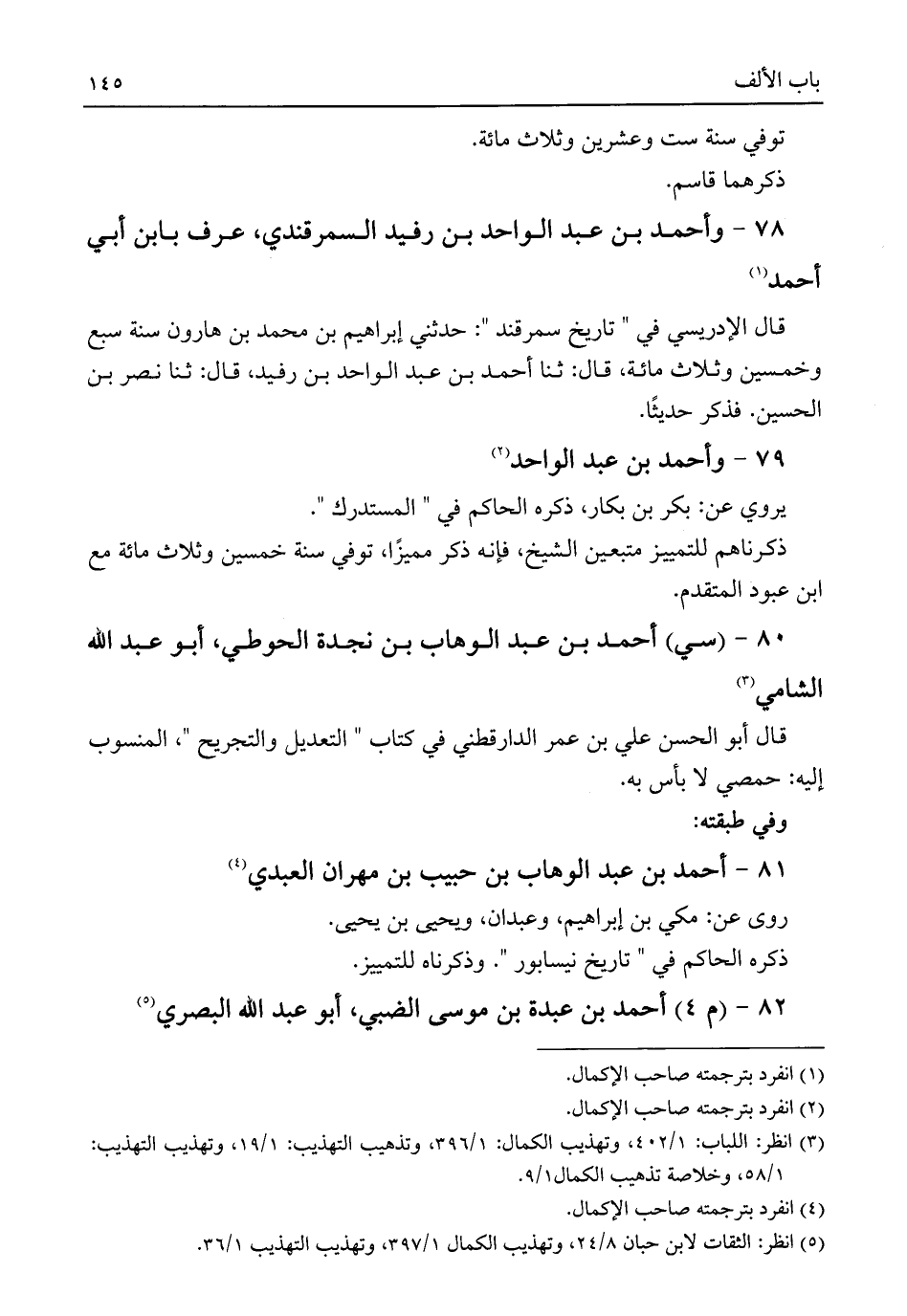 (¬٣) انظر: اللباب: ١/ ٤٠٢، وتهذيب الكمال: ١/ ٣٩٦، وتذهيب التهذيب: ١/ ١٩، وتهذيب التهذيب: ١/ ٥٨، وخلاصة تذهيب الكمال ١/ ٩.