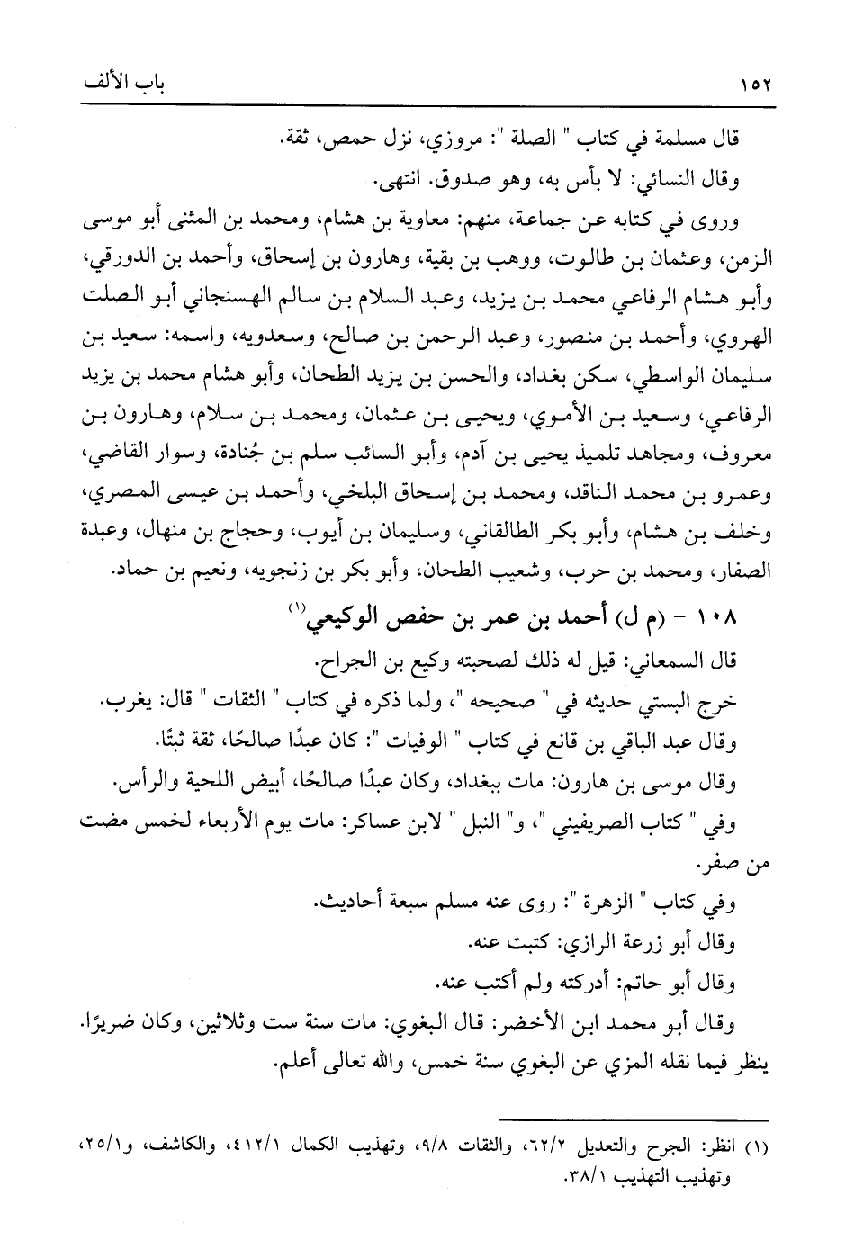 ١٠٨ - (م ل) أحمد بن عمر بن حفص الوكيعي (¬١)