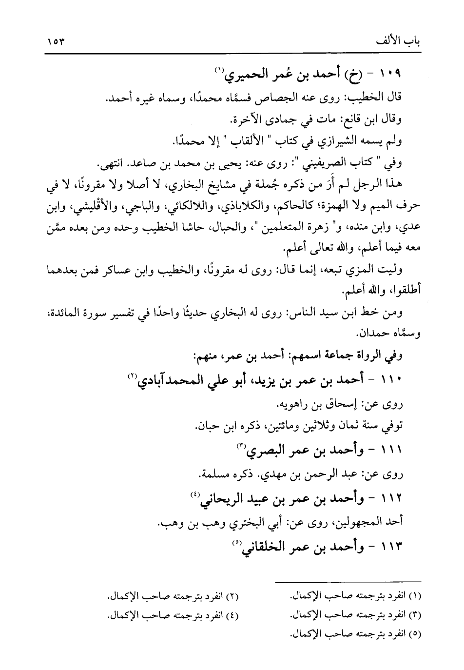 ١١٣ - وأحمد بن عمر الخلقاني (¬٥)