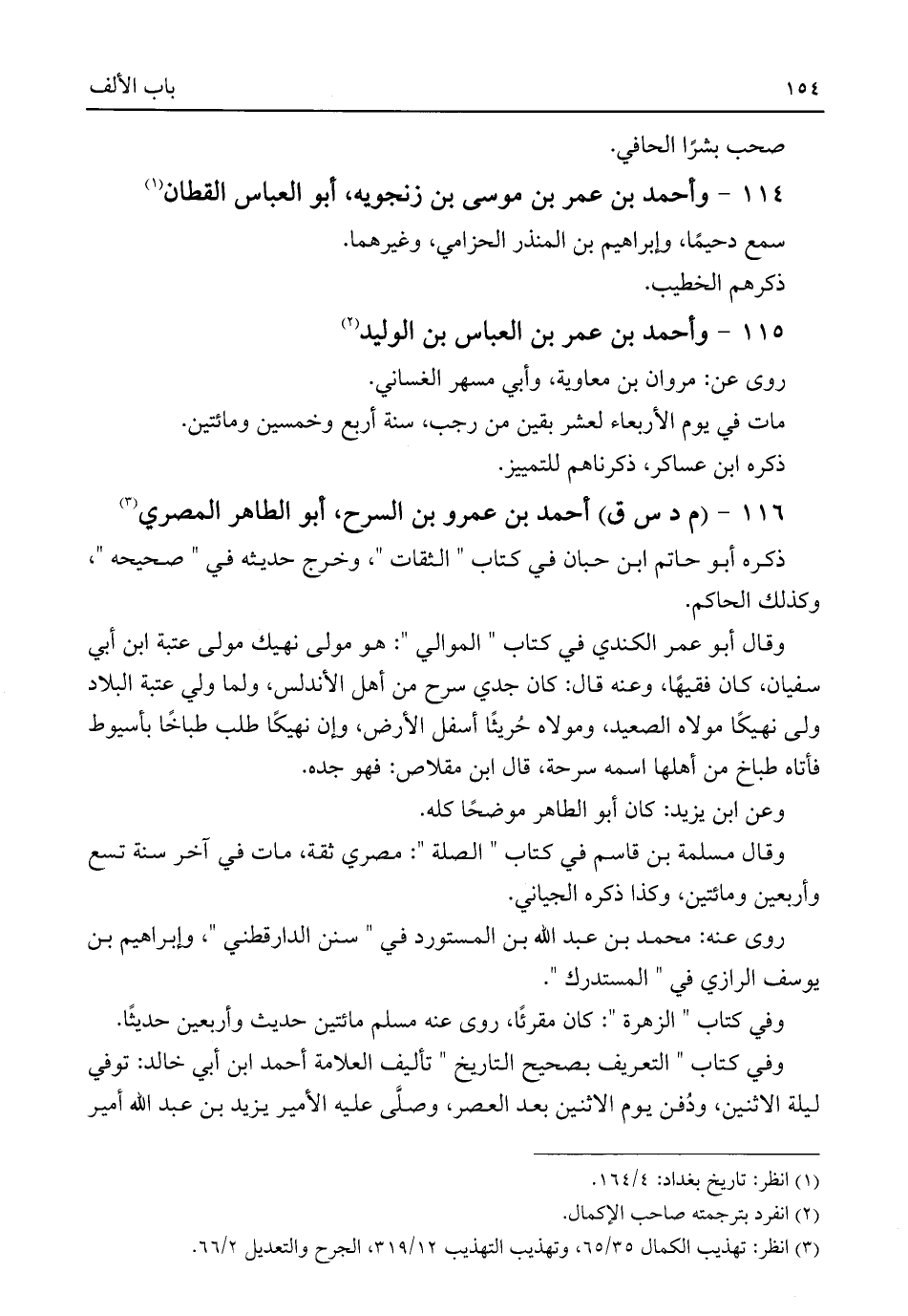 ١١٤ - وأحمد بن عمر بن موسى بن زنجويه، أبو العباس القطان (¬١)