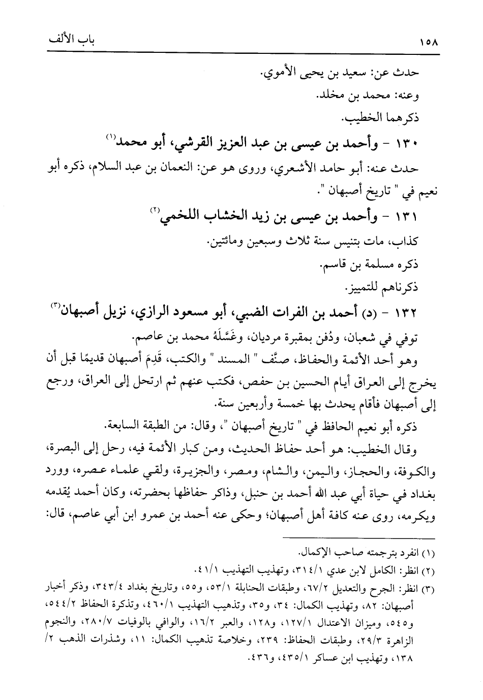 (¬٣) انظر: الجرح والتعديل ٢/ ٦٧، وطبقات الحنابلة ١/ ٥٣، و ٥٥، وتاريخ بغداد ٤/ ٣٤٣، وذكر أخبار أصبهان: ٨٢، وتهذيب الكمال: ٣٤، و ٣٥، وتذهيب التهذيب ١/ ٤٦٠، وتذكرة الحفاظ ٢/ ٥٤٤، و ٥٤٥، وميزان الاعتدال ١/ ١٢٧، و ١٢٨، والعبر ٢/ ١٦، والوافي بالوفيات ٧/ ٢٨٠، والنجوم الزاهرة ٣/ ٢٩، وطبقات الحفاظ: ٢٣٩، وخلاصة تذهيب الكمال: ١١، وشذرات الذهب ٢/ ١٣٨، وتهذيب ابن عساكر ١/ ٤٣٥، و ٤٣٦.