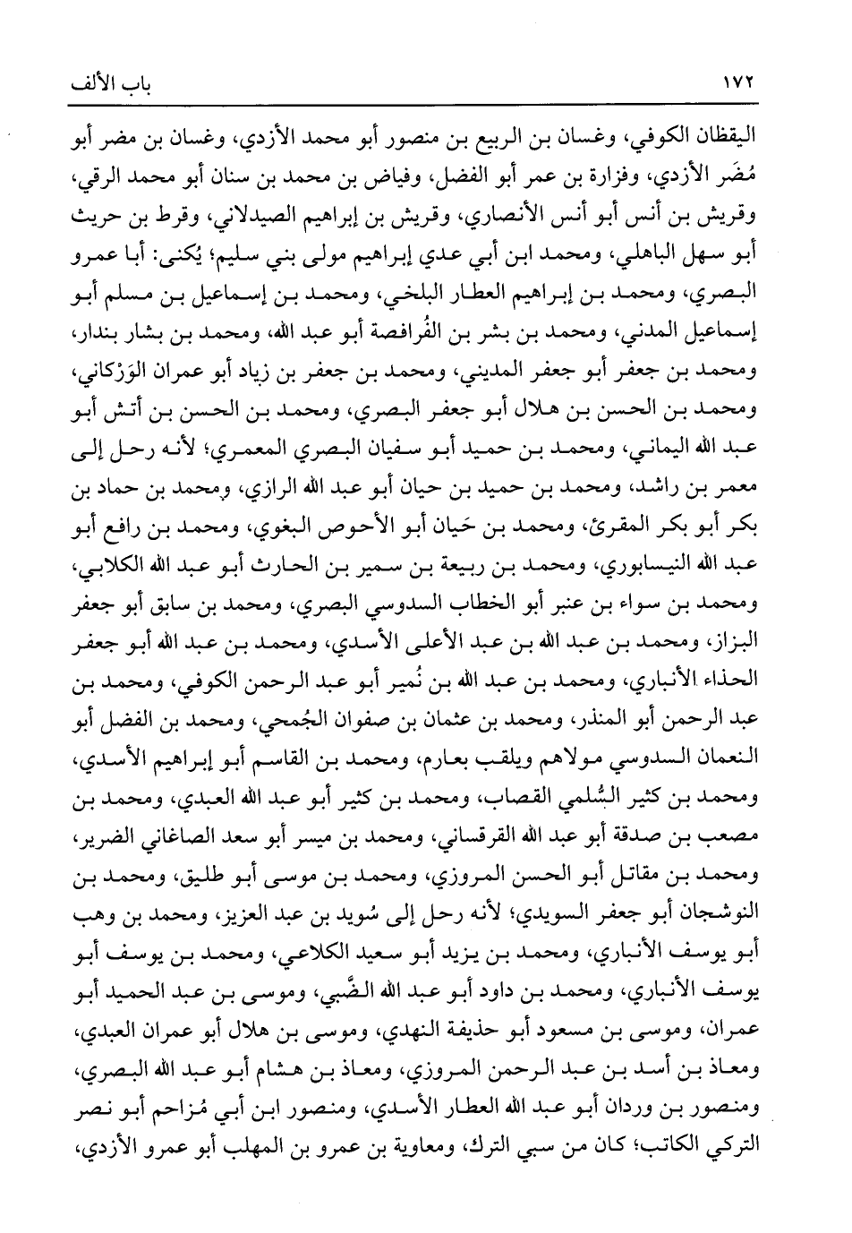 اليقظان الكوفي، وغسان بن الربيع بن منصور أبو محمد الأزدي، وغسان بن مضر أبو مُضَر الأزدي، وفزارة بن عمر أبو الفضل، وفياض بن محمد بن سنان أبو محمد الرقي، وقريش بن أنس أبو أنس الأنصاري، وقريش بن إبراهيم الصيدلاني، وقرط بن حريث أبو سهل الباهلي، ومحمد ابن أبي عدي إبراهيم مولى بني سليم؛ يُكنى: أبا عمرو البصري، ومحمد بن إبراهيم العطار البلخي، ومحمد بن إسماعيل بن مسلم أبو إسماعيل المدني، ومحمد بن بشر بن الفُرافصة أبو عبد اللَّه، ومحمد بن بشار بندار، ومحمد بن جعفر أبو جعفر المديني، ومحمد بن جعفر بن زياد أبو عمران الوَرْكاني، ومحمد بن الحسن بن هلال أبو جعفر البصري، ومحمد بن الحسن بن أتش أبو عبد اللَّه اليماني، ومحمد بن حميد أبو سفيان البصري المعمري؛ لأنه رحل إلى معمر بن راشد، ومحمد بن حميد بن حيان أبو عبد اللَّه الرازي، ومحمد بن حماد بن بكر أبو بكر المقرئ، ومحمد بن حَيان أبو الأحوص البغوي، ومحمد بن رافع أبو عبد اللَّه النيسابوري، ومحمد بن ربيعة بن سمير بن الحارث أبو عبد اللَّه الكلابي، ومحمد بن سواء بن عنبر أبو الخطاب السدوسي البصري، ومحمد بن سابق أبو جعفر البزاز، ومحمد بن عبد اللَّه بن عبد الأعلى الأسدي، ومحمد بن عبد اللَّه أبو جعفر الحذاء الأنباري، ومحمد بن عبد اللَّه بن نُمير أبو عبد الرحمن الكوفي، ومحمد بن عبد الرحمن أبو المنذر، ومحمد بن عثمان بن صفوان الجُمحي، ومحمد بن الفضل أبو النعمان السدوسي مولاهم ويلقب بعارم، ومحمد بن القاسم أبو إبراهيم الأسدي، ومحمد بن كثير السُّلمي القصاب، ومحمد بن كثير أبو عبد اللَّه العبدي، ومحمد بن مصعب بن صدقة أبو عبد اللَّه القرقساني، ومحمد بن ميسر أبو سعد الصاغاني الضرير، ومحمد بن مقاتل أبو الحسن المروزي، ومحمد بن موسى أبو طليق، ومحمد بن النوشجان أبو جعفر السويدي؛ لأنه رحل إلى سُويد بن عبد العزيز، ومحمد بن وهب أبو يوسف الأنباري، ومحمد بن يزيد أبو سعيد الكلاعي، ومحمد بن يوسف أبو يوسف الأنباري، ومحمد بن داود أبو عبد اللَّه الضَّبي، وموسى بن عبد الحميد أبو عمران، وموسى بن مسعود أبو حذيفة النهدي، وموسى بن هلال أبو عمران العبدي، ومعاذ بن أسد بن عبد الرحمن المروزي، ومعاذ بن هشام أبو عبد اللَّه البصري، ومنصور بن وردان أبو عبد اللَّه العطار الأسدي، ومنصور ابن أبي مُزاحم أبو نصر التركي الكاتب؛ كان من سبي الترك، ومعاوية بن عمرو بن المهلب أبو عمرو الأزدي،