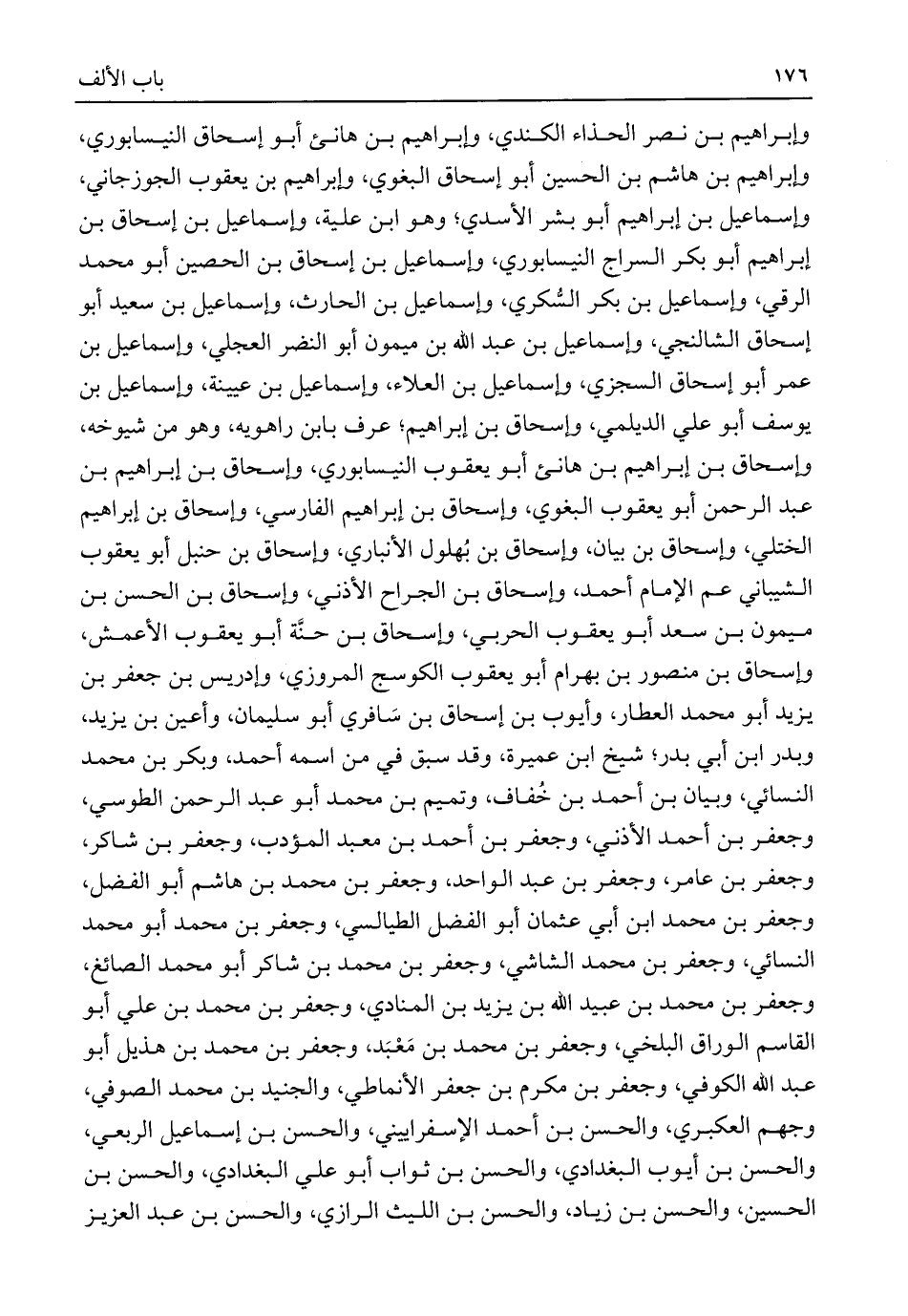 وإبراهيم بن نصر الحذاء الكندي، وإبراهيم بن هانئ أبو إسحاق النيسابوري، وإبراهيم بن هاشم بن الحسين أبو إسحاق البغوي، وإبراهيم بن يعقوب الجوزجاني، وإسماعيل بن إبراهيم أبو بشر الأسدي؛ وهو ابن علية، وإسماعيل بن إسحاق بن إبراهيم أبو بكر السراج النيسابوري، وإسماعيل بن إسحاق بن الحصين أبو محمد الرقي، وإسماعيل بن بكر السُّكري، وإسماعيل بن الحارث، وإسماعيل بن سعيد أبو إسحاق الشالنجي، وإسماعيل بن عبد اللَّه بن ميمون أبو النضر العجلي، وإسماعيل بن عمر أبو إسحاق السجزي، وإسماعيل بن العلاء، وإسماعيل بن عيينة، وإسماعيل بن يوسف أبو علي الديلمي، وإسحاق بن إبراهيم؛ عرف بابن راهويه، وهو من شيوخه، وإسحاق بن إبراهيم بن هانئ أبو يعقوب النيسابوري، وإسحاق بن إبراهيم بن عبد الرحمن أبو يعقوب البغوي، وإسحاق بن إبراهيم الفارسي، وإسحاق بن إبراهيم الختلي، وإسحاق بن بيان، وإسحاق بن بُهلول الأنباري، وإسحاق بن حنبل أبو يعقوب الشيباني عم الإمام أحمد، وإسحاق بن الجراح الأذني، وإسحاق بن الحسن بن ميمون بن سعد أبو يعقوب الحربي، وإسحاق بن حنة أبو يعقوب الأعمش، وإسحاق بن منصور بن بهرام أبو يعقوب الكوسج المروزي، وإدريس بن جعفر بن يزيد أبو محمد العطار، وأيوب بن إسحاق بن سَافري أبو سليمان، وأعين بن يزيد، وبدر ابن أبي بدر؛ شيخ ابن عميرة، وقد سبق في من اسمه أحمد، وبكر بن محمد النسائي، وبيان بن أحمد بن خُفاف، وتميم بن محمد أبو عبد الرحمن الطوسي، وجعفر بن أحمد الأذني، وجعفر بن أحمد بن معبد المؤدب، وجعفر بن شاكر، وجعفر بن عامر، وجعفر بن عبد الواحد، وجعفر بن محمد بن هاشم أبو الفضل، وجعفر بن محمد ابن أبي عثمان أبو الفضل الطيالسي، وجعفر بن محمد أبو محمد النسائي، وجعفر بن محمد الشاشي، وجعفر بن محمد بن شاكر أبو محمد الصائغ، وجعفر بن محمد بن عبيد اللَّه بن يزيد بن المنادي، وجعفر بن محمد بن علي أبو القاسم الوراق البلخي، وجعفر بن محمد بن مَعْبَد، وجعفر بن محمد بن هذيل أبو عبد اللَّه الكوفي، وجعفر بن مكرم بن جعفر الأنماطي، والجنيد بن محمد الصوفي، وجهم العكبري، والحسن بن أحمد الإسفراييني، والحسن بن إسماعيل الربعي، والحسن بن أيوب البغدادي، والحسن بن ثواب أبو علي البغدادي، والحسن بن الحسين، والحسن بن زياد، والحسن بن الليث الرازي، والحسن بن عبد العزيز