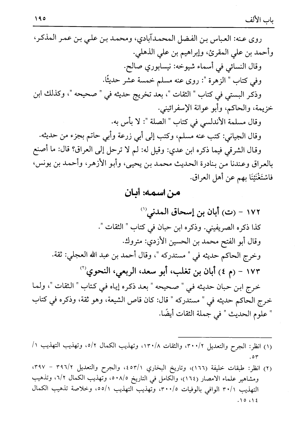 (¬١) انظر: الجرح والتعديل ٢/ ٣٠٠، والثقات ٨/ ١٣٠، وتهذيب الكمال ٢/ ٥، وتهذيب التهذيب ١/ ٥٣.