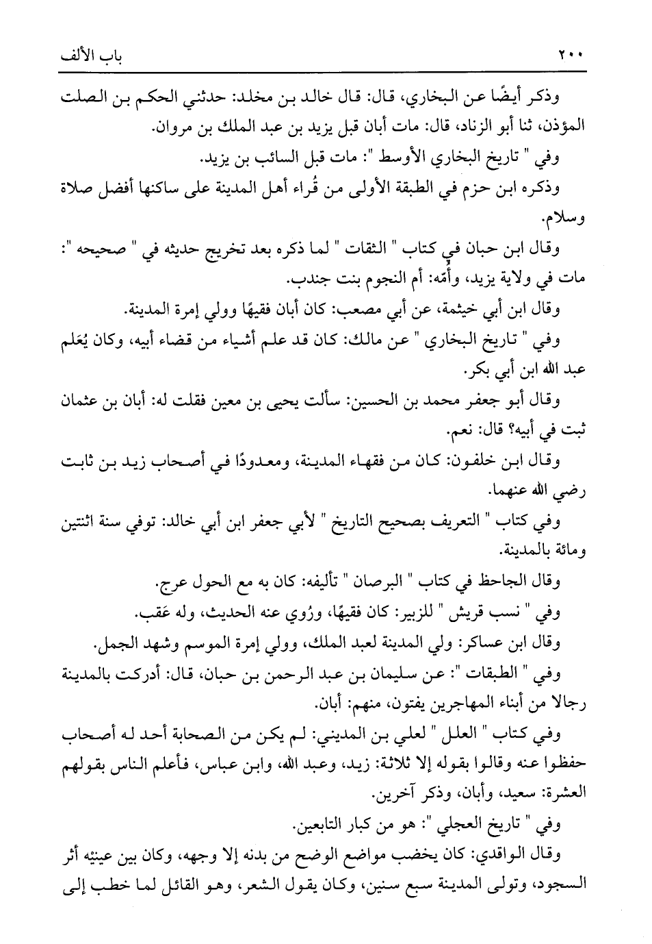وذكر أيضًا عن البخاري، قال: قال خالد بن مخلد: حدثني الحكم بن الصلت المؤذن، ثنا أبو الزناد، قال: مات أبان قبل يزيد بن عبد الملك بن مروان.