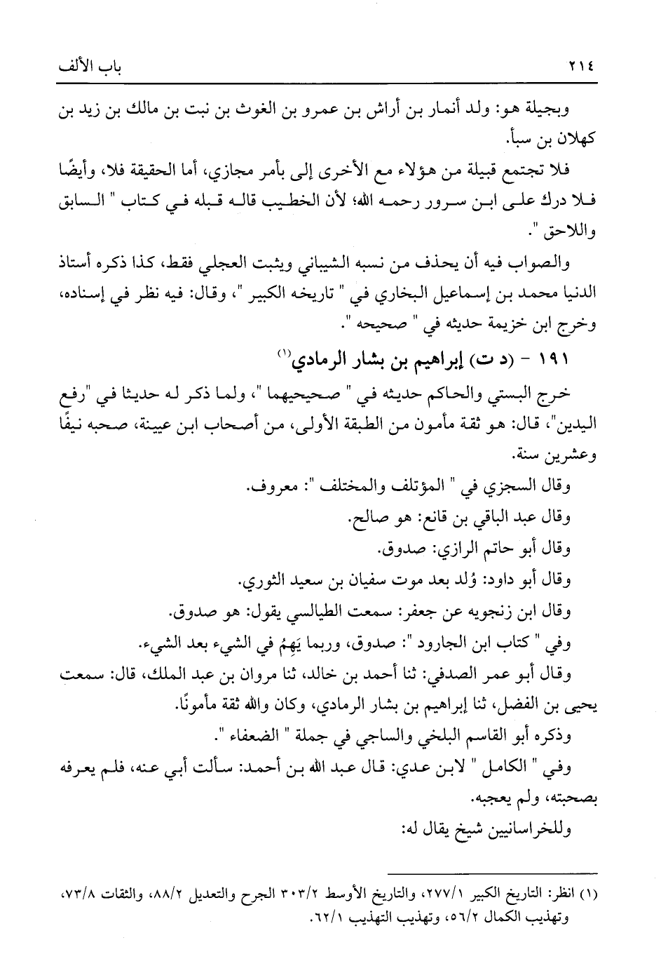 (¬١) انظر: التاريخ الكبير ١/ ٢٧٧، والتاريخ الأوسط ٢/ ٣٠٣، والجرح والتعديل ٢/ ٨٨، والثقات ٨/ ٧٣، وتهذيب الكمال ٢/ ٥٦، وتهذيب التهذيب ١/ ٦٢.