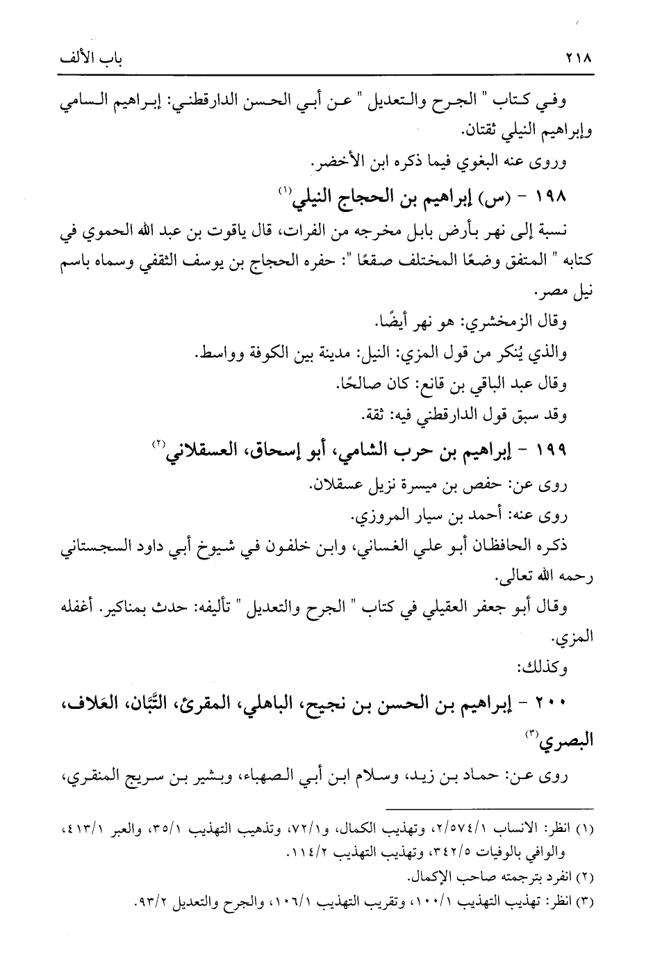 وفي كتاب "الجرح والتعديل" عن أبي الحسن الدارقطني: إبراهيم السامي وإبراهيم النيلي ثقتان.
