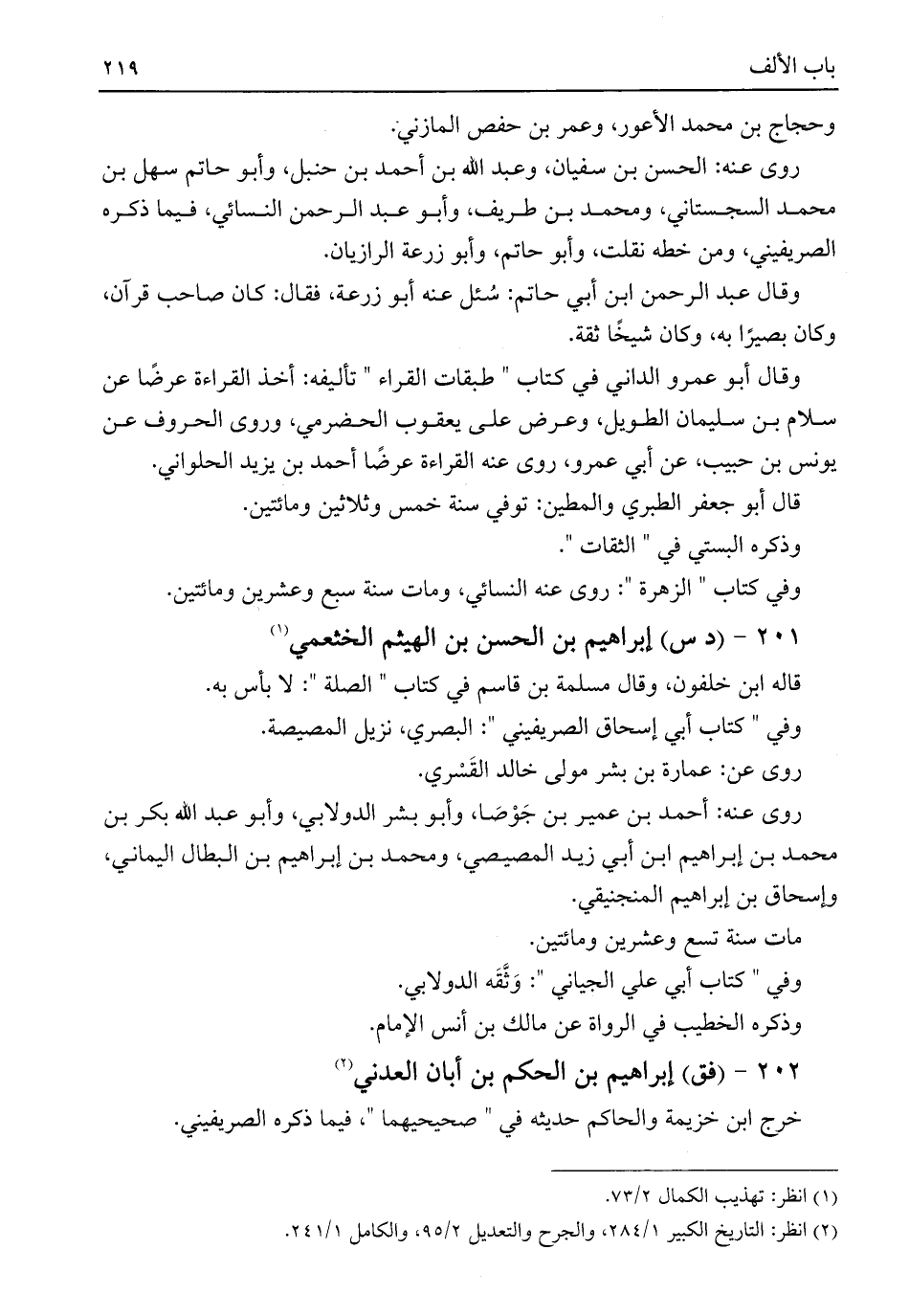 (¬١) انظر: تهذيب الكمال ٢/ ٧٣.