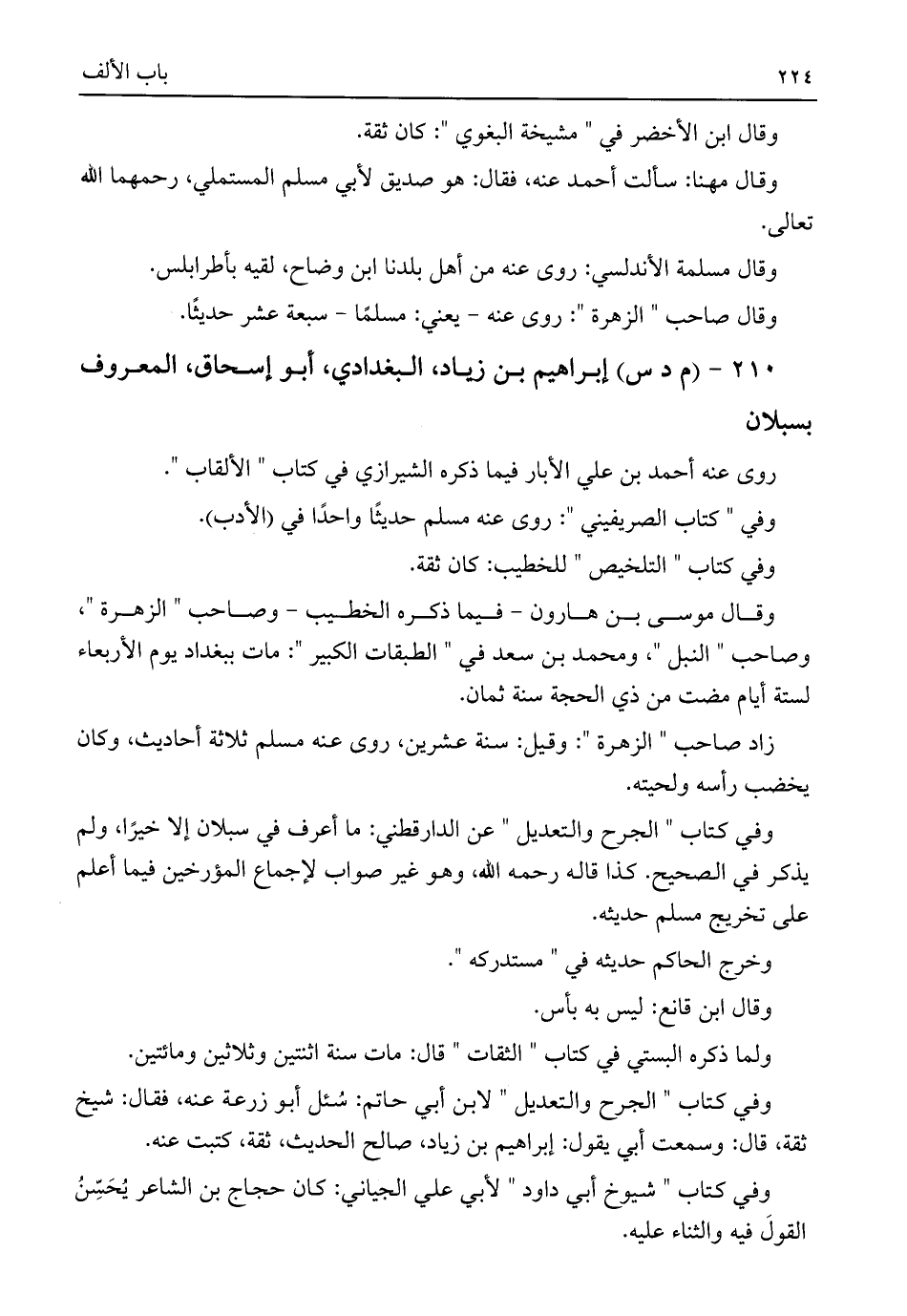 ٢١٠ - (م د س) إبراهيم بن زياد، البغدادي، أبو إسحاق، المعروف بسبلان