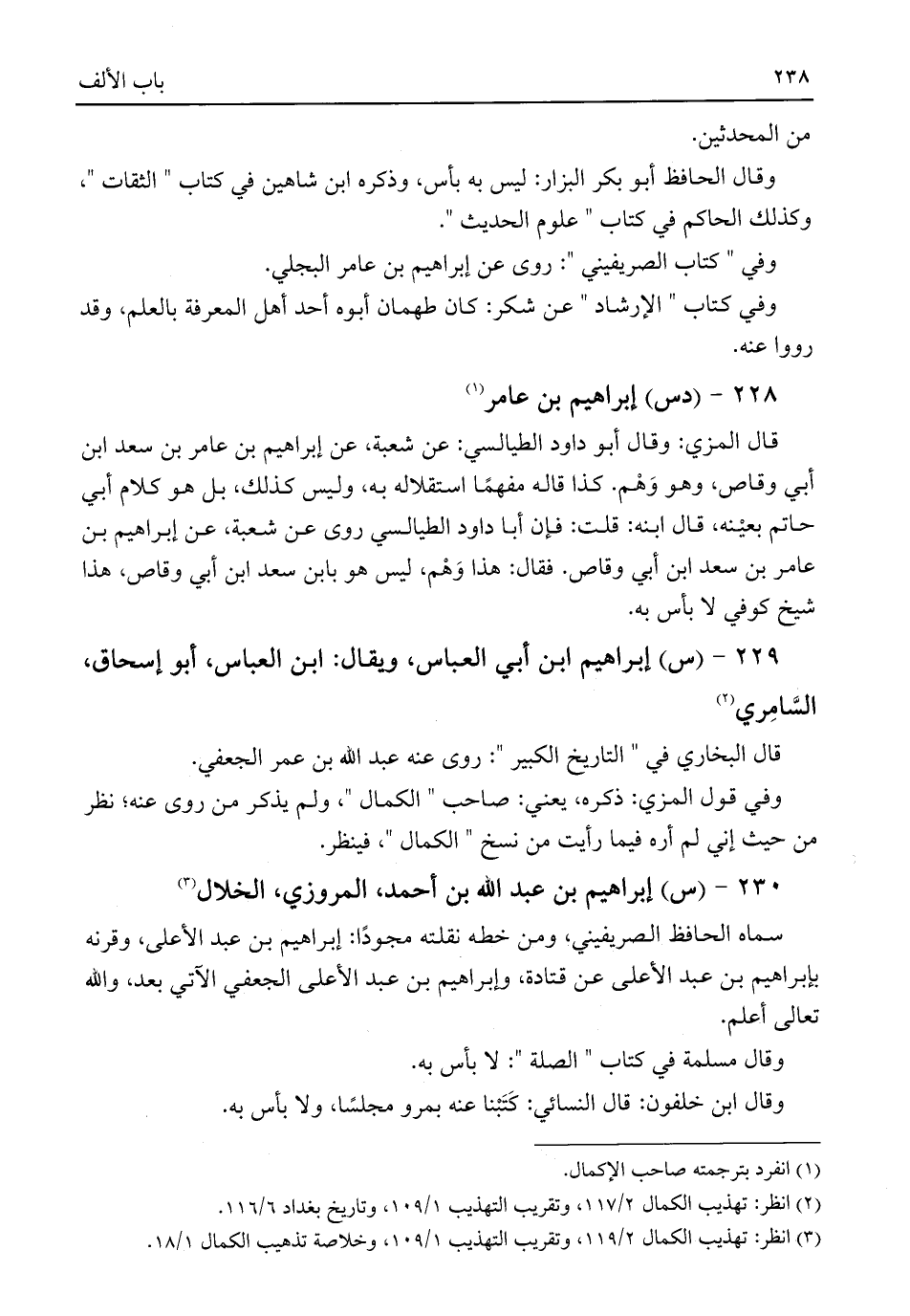 (¬٣) انظر: تهذيب الكمال ٢/ ١١٩، وتقريب التهذيب ١/ ١٠٩، وخلاصة تذهيب الكمال ١/ ١٨.