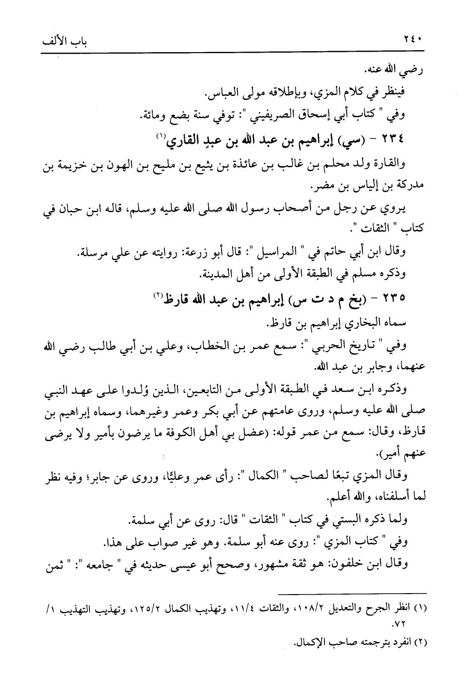 ٢٣٥ - (بخ م د ت س) إبراهيم بن عبد اللَّه قارظ (¬٢)