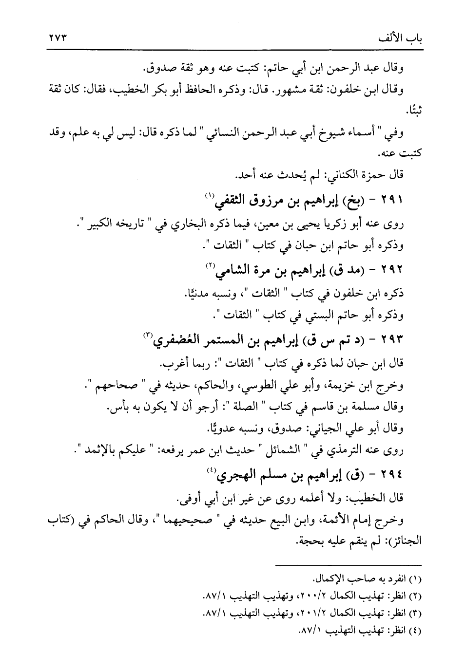 (¬٣) انظر: تهذيب الكمال ٢/ ٢٠١، وتهذيب التهذيب ١/ ٨٧.