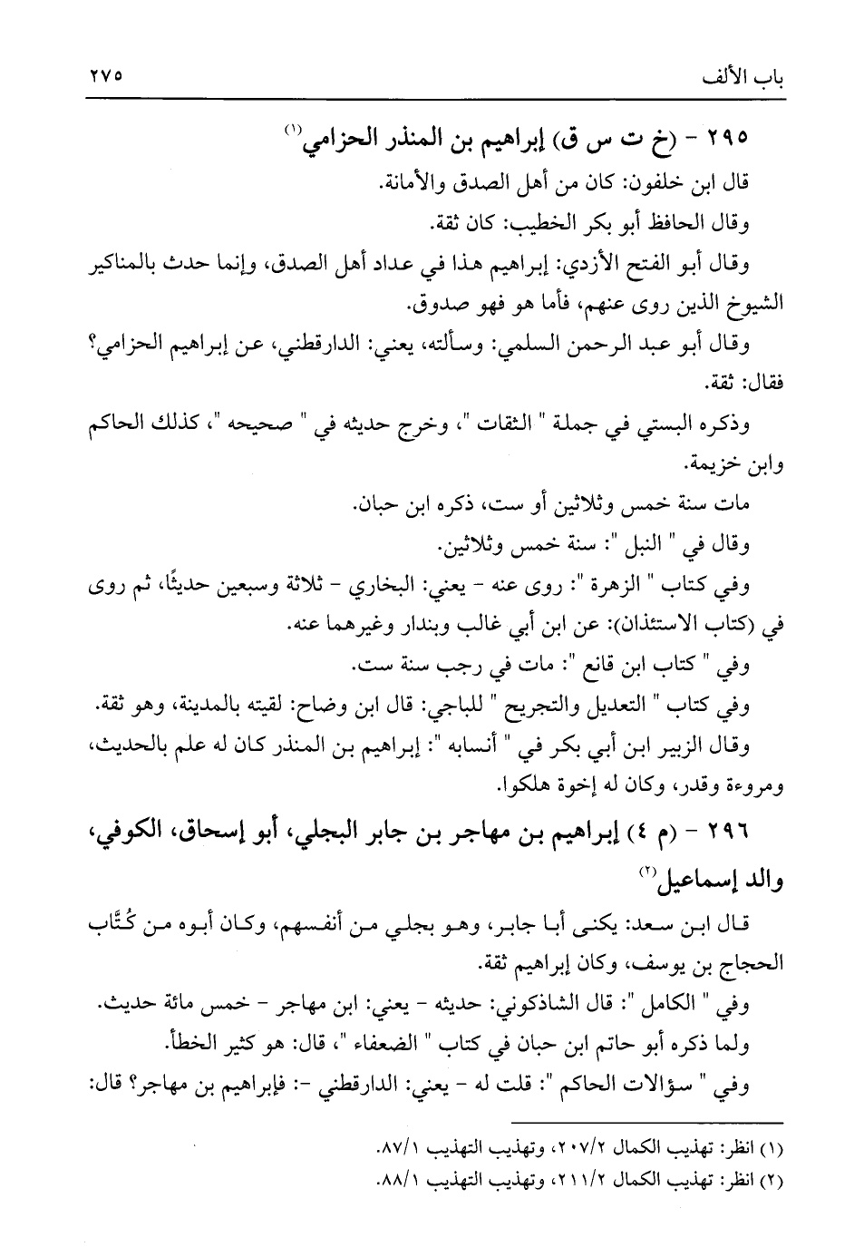 (¬٢) انظر: تهذيب الكمال ٢/ ٢١١، وتهذيب التهذيب ١/ ٨٨.