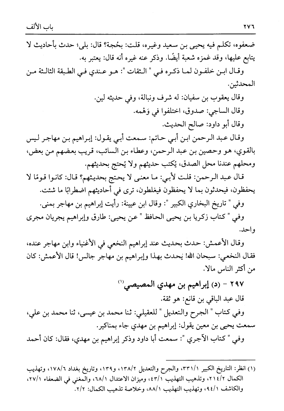 (¬١) انظر: التاريخ الكبير ١/ ٣٣١، والجرح والتعديل ٢/ ١٣٨، و ١٣٩، وتاريخ بغداد ٦/ ١٧٨، وتهذيب الكمال ٢/ ٢١٤، وتذهيب التهذيب ١/ ٤٣، وميزان الاعتدال ١/ ٦٨، والمغني في الضعفاء ١/ ٢٧، والكاشف ١/ ٩٤، وتهذيب التهذيب ١/ ٨٨، وخلاصة تذهيب الكمال: ٢/ ٢.