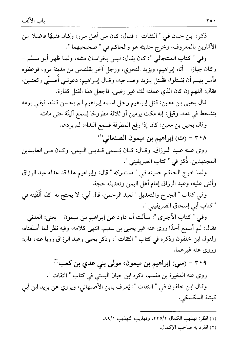 (¬١) انظر: تهذيب الكمال ٢/ ٢٢٥، وتهذيب التهذيب ١/ ٨٩.