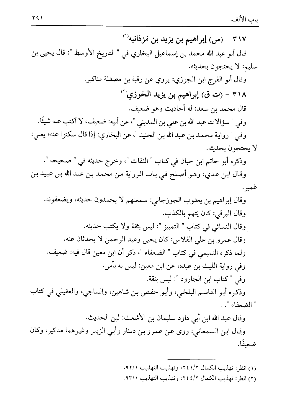 ٣١٨ - (ت ق) إبراهيم بن يزيد الخوزي (¬٢)