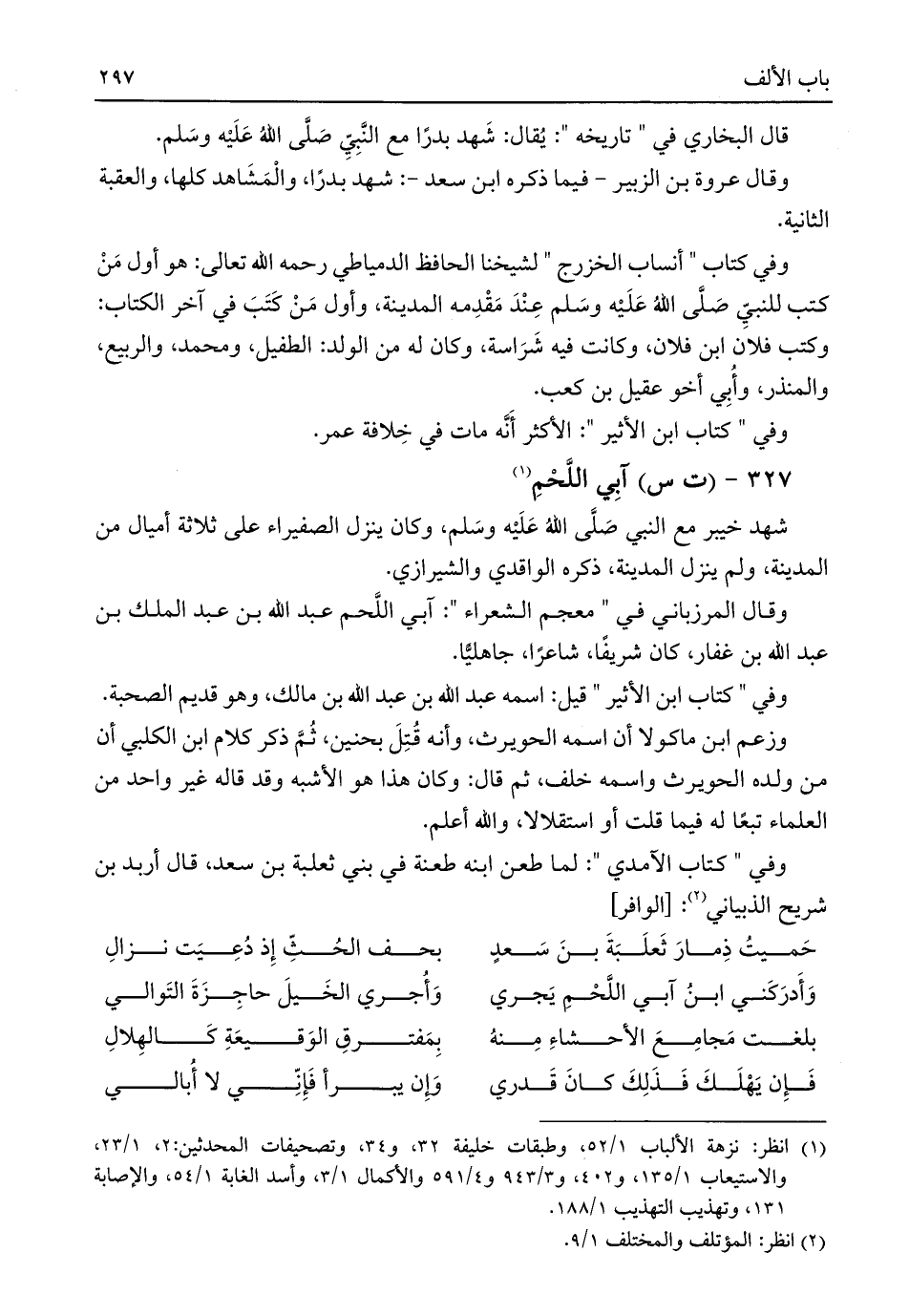 (¬١) انظر: نزهة الألباب ١/ ٥٢، وطبقات خليفة ٣٢، و ٣٤، وتصحيفات المحدثين: ٢، ١/ ٢٣، والاستيعاب ١/ ١٣٥، و ٤٠٢، و ٣/ ٩٤٣ و ٤/ ٥٩١ والأكمال ١/ ٣، وأسد الغابة ١/ ٥٤، والإصابة ١٣١، وتهذيب التهذيب ١/ ١٨٨.