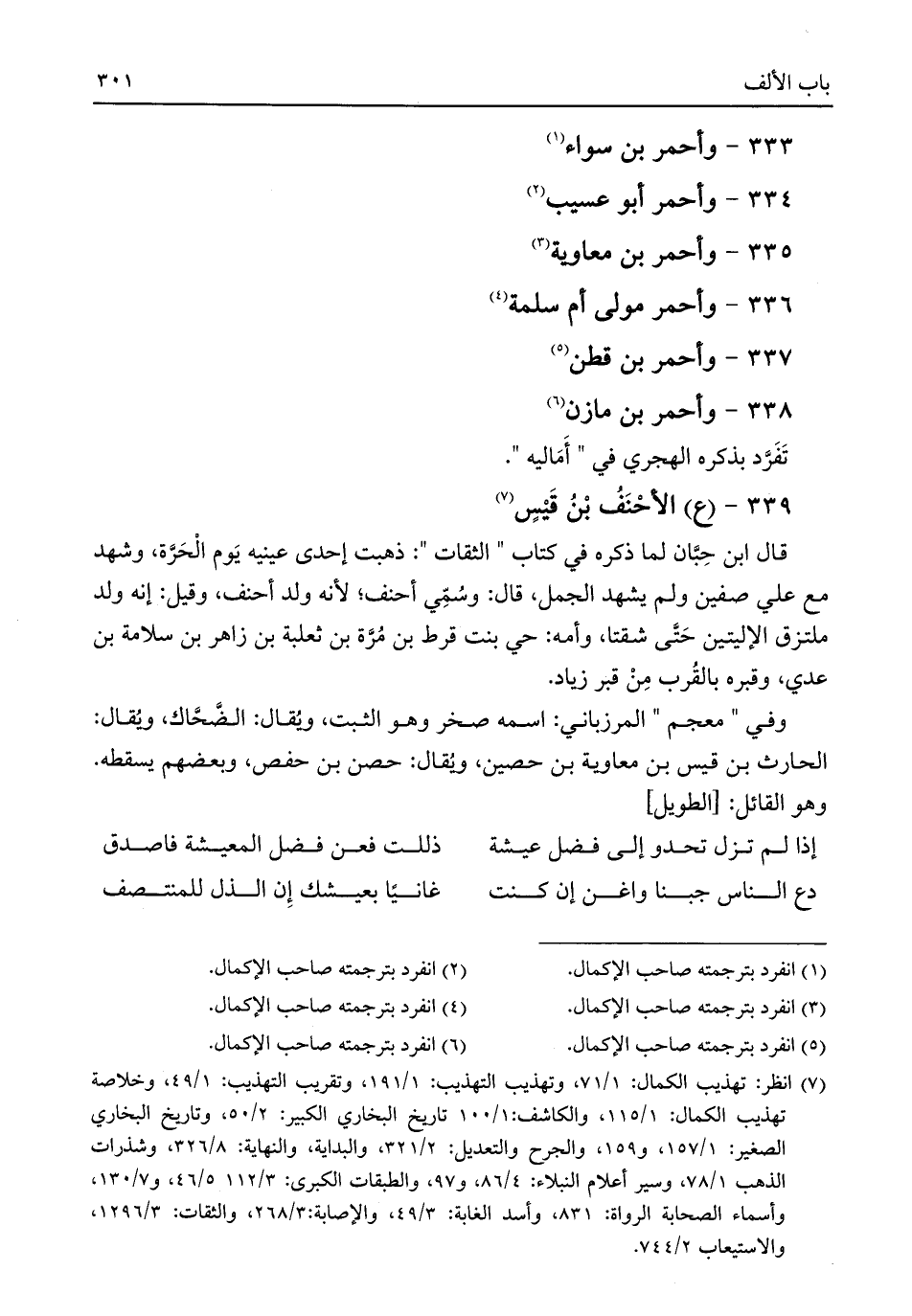 ٣٣٩ - (ع) الأحْنَفُ بْنُ قَيْسٍ (¬٧)