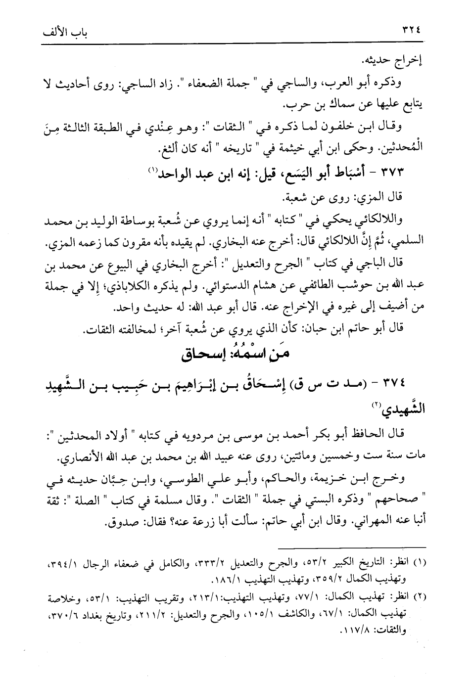 ٣٧٤ - (مد ت س ق) إِسْحَاقُ بن إبْرَاهِيمَ بن حَبِيب بن الشَّهِيدِ الشَّهيدي (¬٢)