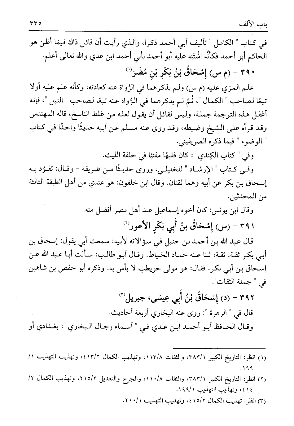 في كتاب "الكامل" تأليف أبي أحمد ذكرا، والذي رأيت أن قائل ذاك فيمَا أظن هو الحاكم أبو أحمد فكأنَّه اشْتَبَه عليه أبو أحمد بأبي أحمد ابن عدي واللَّه تعالى أعلم.
