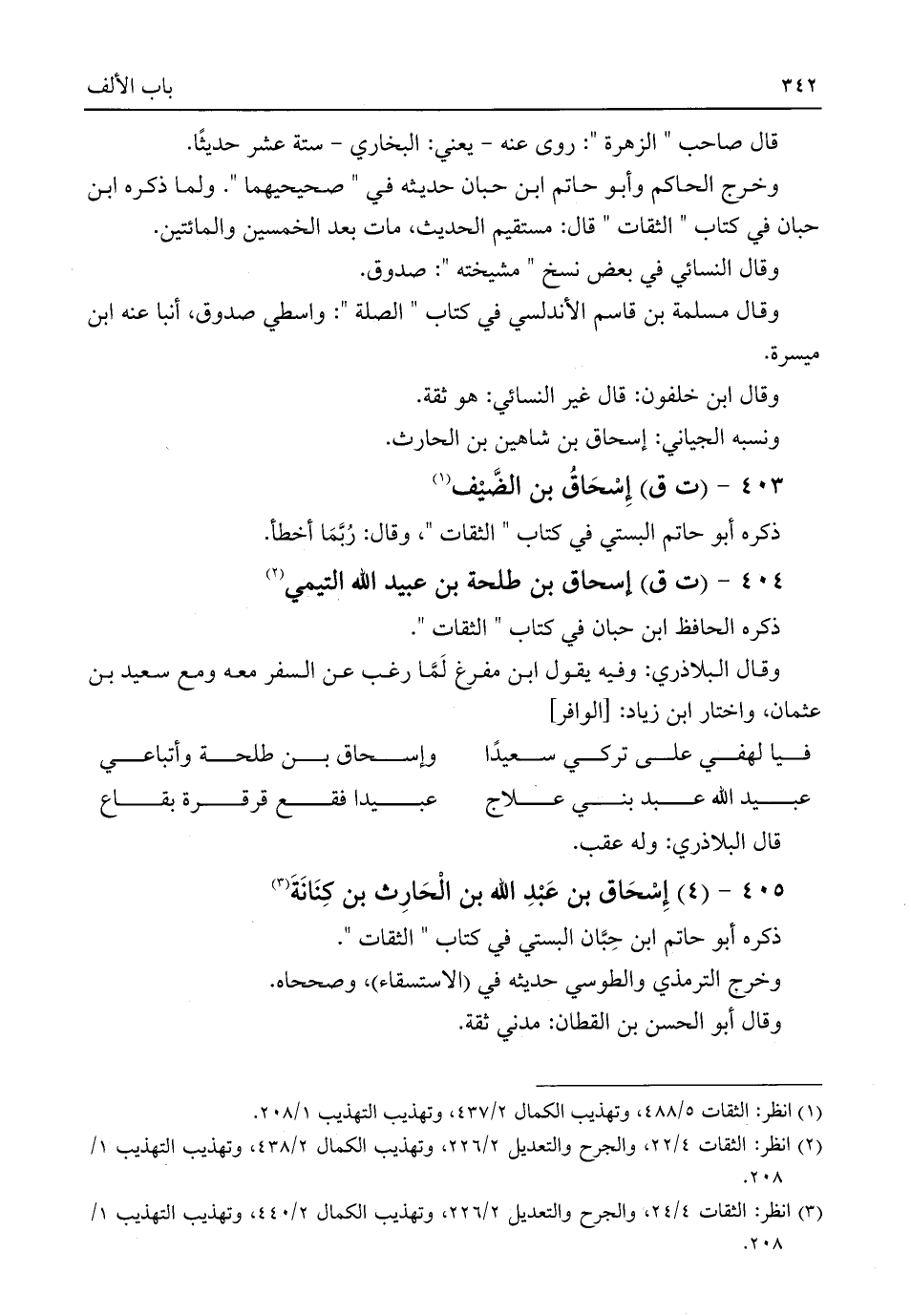 (¬٣) انظر: الثقات ٤/ ٢٤، والجرح والتعديل ٢/ ٢٢٦، وتهذيب الكمال ٢/ ٤٤٠، وتهذيب التهذيب ١/ ٢٠٨.