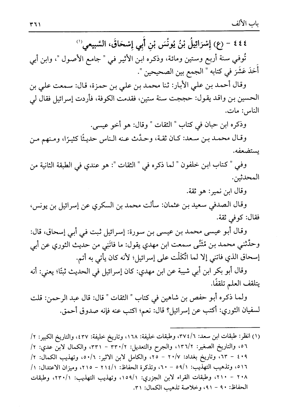 ٤٤٤ - إِسْرَائِيلُ بْنُ يُونُسَ بْنِ أَبِي إِسْحَاقَ، السَّبيعي (¬١)