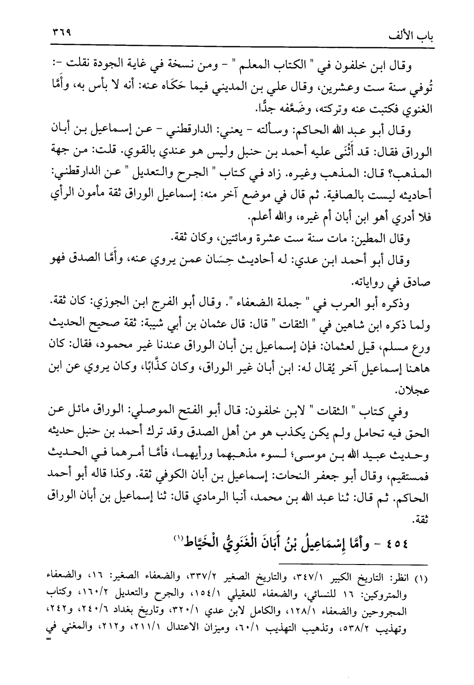 ٤٥٤ - وأمَّا إِسْمَاعِيلُ بْنُ أَبَانَ الْغَنَوِيُّ الْخَيَّاط (¬١)
