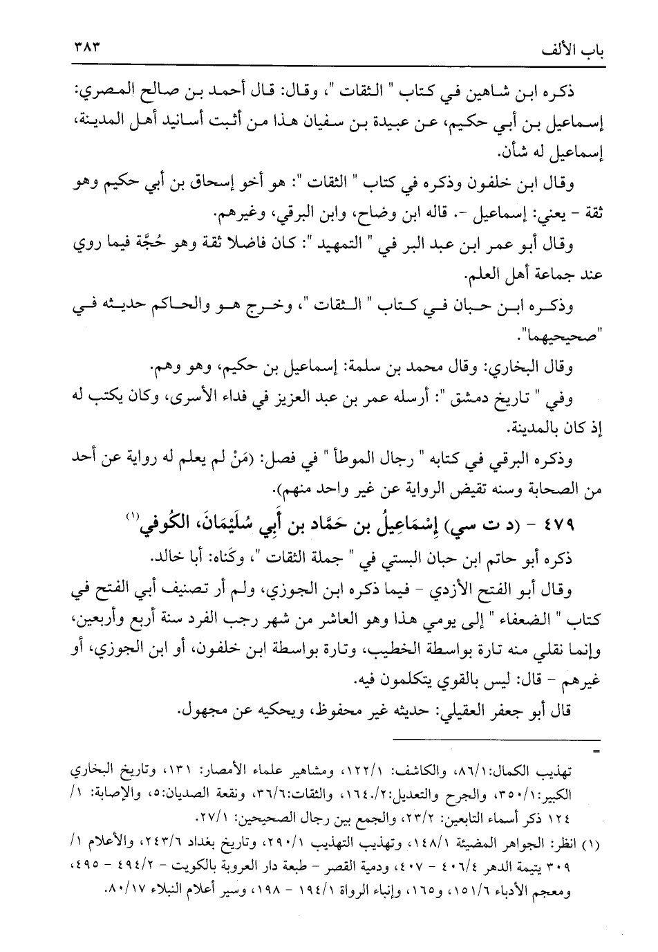 ٤٧٩ - (د ت سي) إِسْمَاعِيلُ بن حَمَّاد بن أَبِي سُلَيْمَانَ، الكُوفي (¬١)