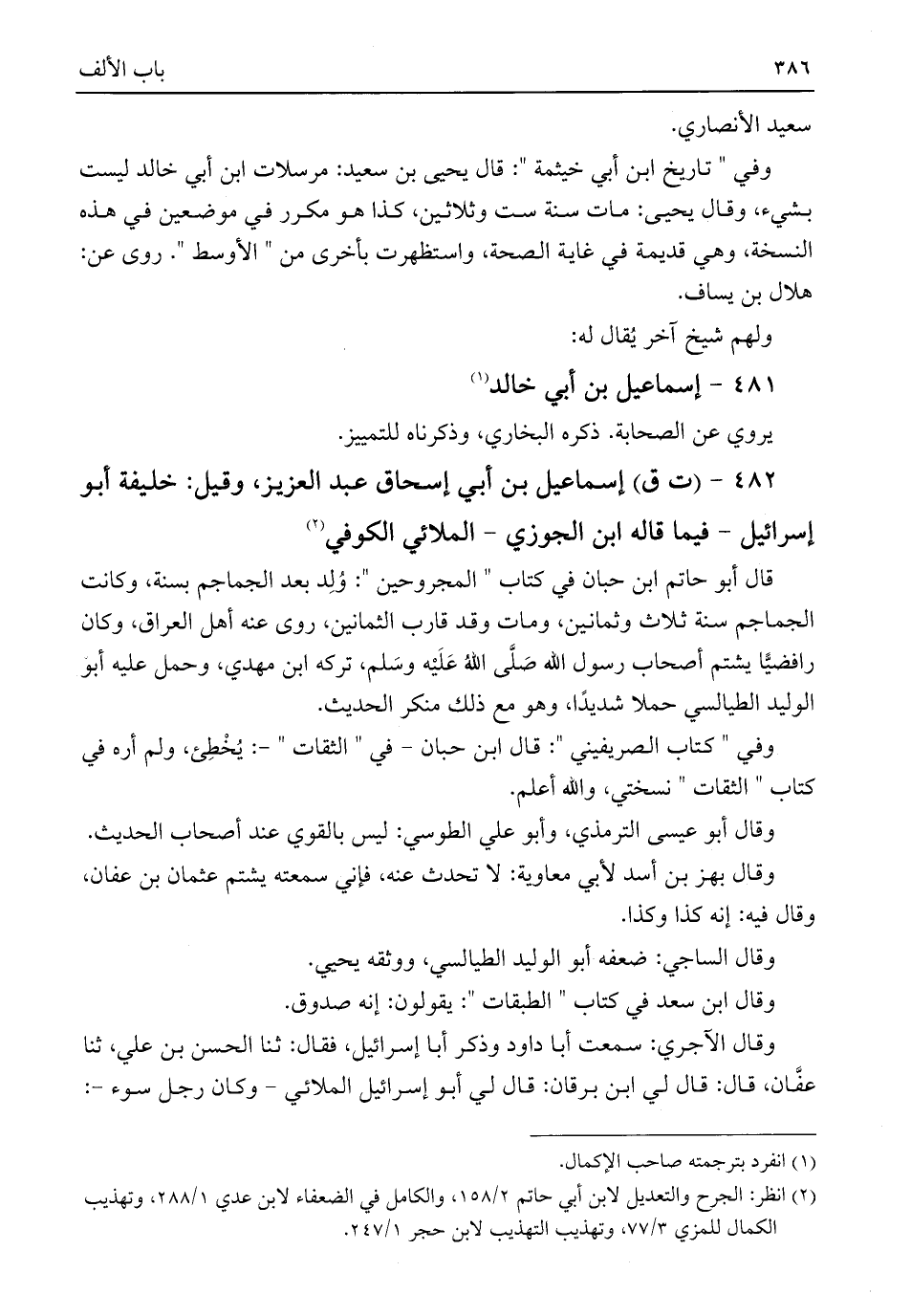 (¬٢) انظر: الجرح والتعديل لابن أبي حاتم ٢/ ١٥٨، والكامل في الضعفاء لابن عدي ١/ ٢٨٨، وتهذيب الكمال للمزي ٣/ ٧٧، وتهذيب التهذيب لابن حجر ١/ ٢٤٧.