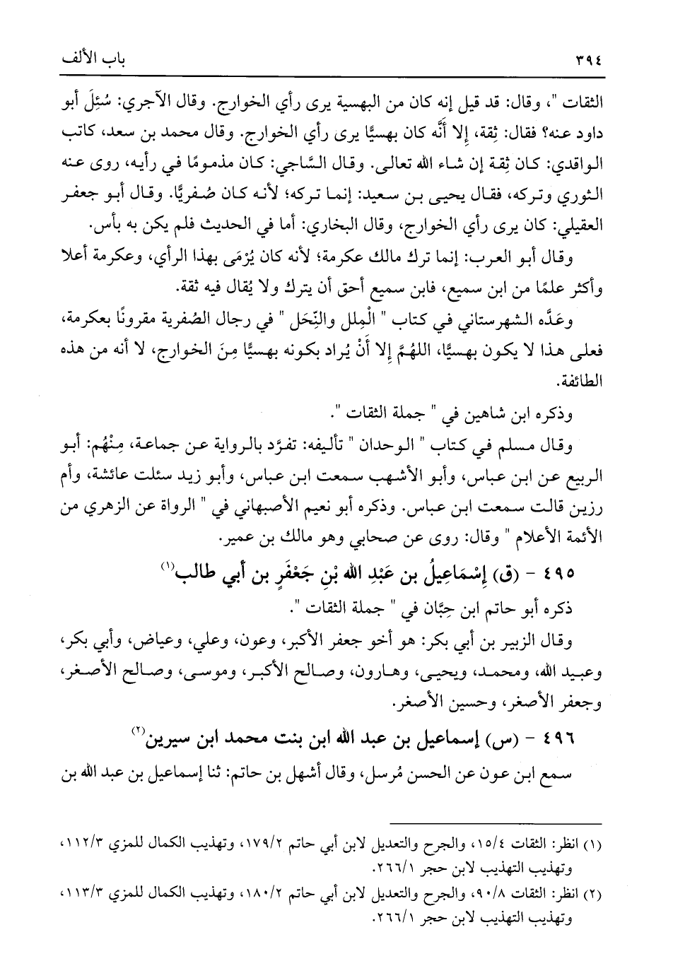 (¬٢) انظر: الثقات ٨/ ٩٠، والجرح والتعديل لابن أبي حاتم ٢/ ١٨٠، وتهذيب الكمال للمزي ٣/ ١١٣، وتهذيب التهذيب لابن حجر ١/ ٢٦٦.