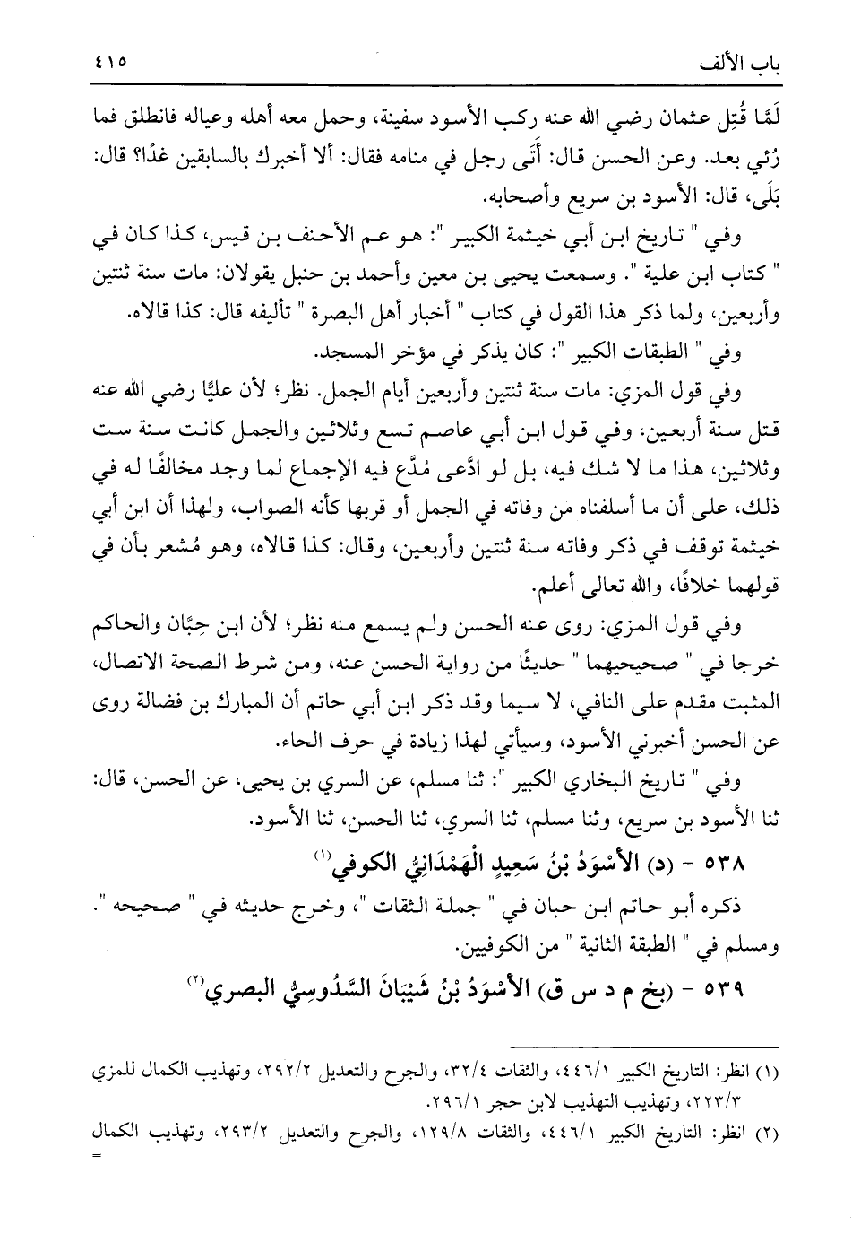 (¬٢) انظر: التاريخ الكبير ١/ ٤٤٦، والثقات ٨/ ١٢٩، والجرح والتعديل ٢/ ٢٩٣، وتهذيب الكمال =