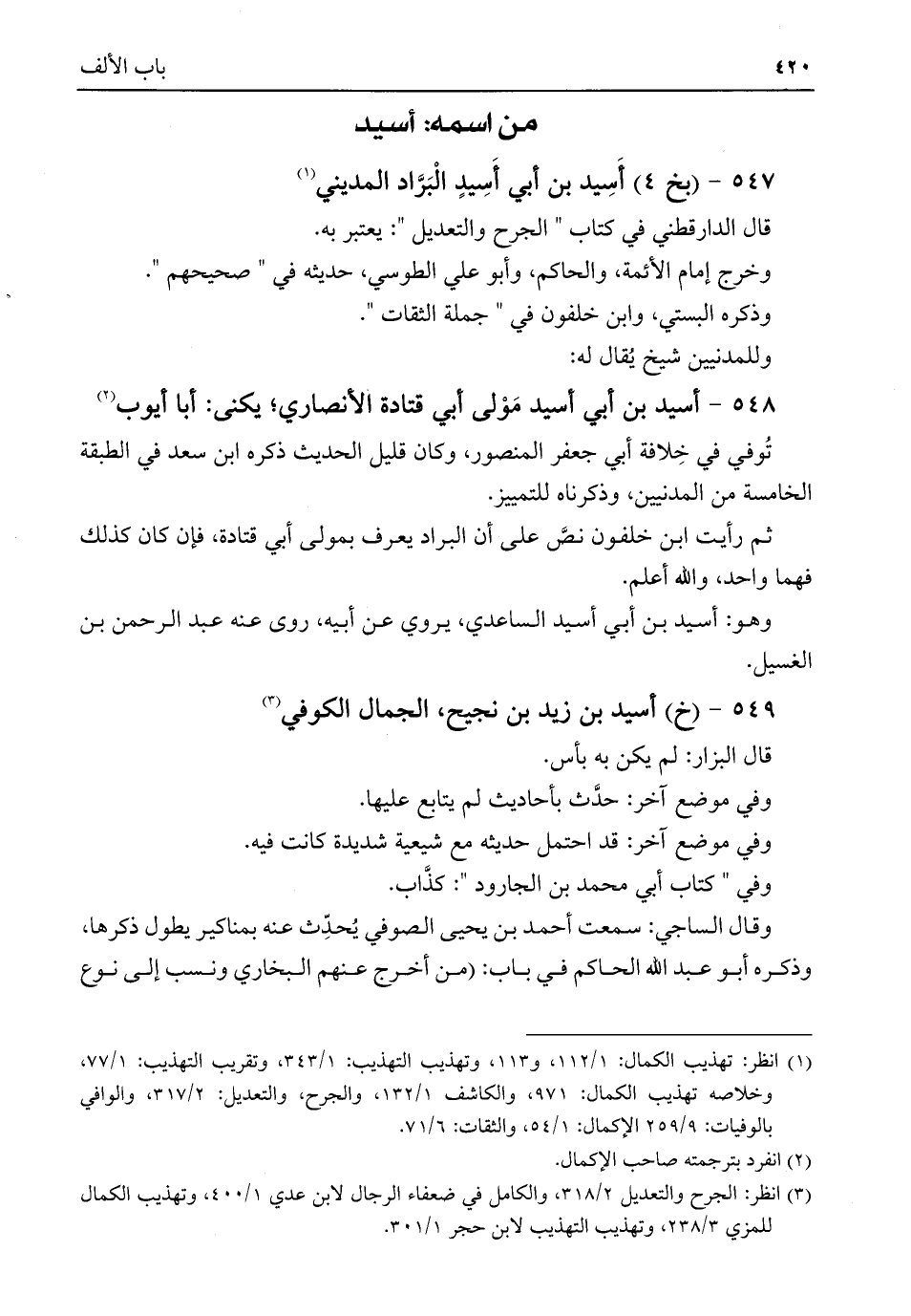 (¬١) انظر: تهذيب الكمال: ١/ ١١٢، و ١١٣، وتهذيب التهذيب: ١/ ٣٤٣، وتقريب التهذيب: ١/ ٧٧، وخلاصة تهذيب الكمال: ٩٧١، والكاشف ١/ ١٣٢، والجرح والتعديل: ٢/ ٣١٧، والوافي بالوفيات: ٩/ ٢٥٩ الإكمال: ١/ ٥٤، والثقات: ٦/ ٧١.