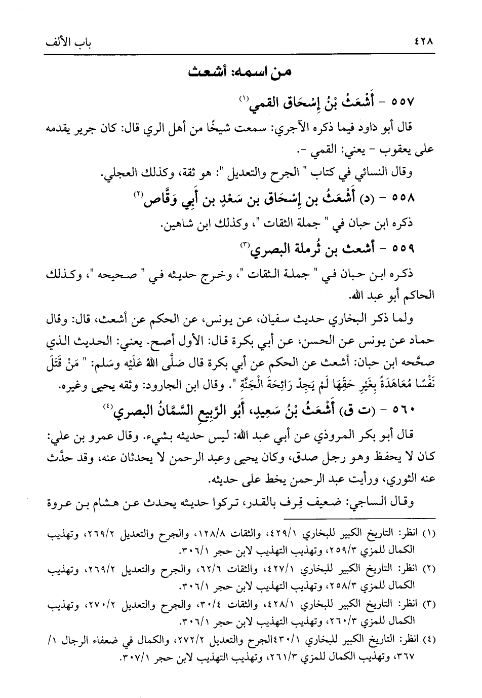 (¬٣) انظر: التاريخ الكبير للبخاري ١/ ٤٢٨، والثقات ٤/ ٣٠، والجرح والتعديل ٢/ ٢٧٠، وتهذيب الكمال للمزي ٣/ ٢٦٠، وتهذيب التهذيب لابن حجر ١/ ٣٠٦.