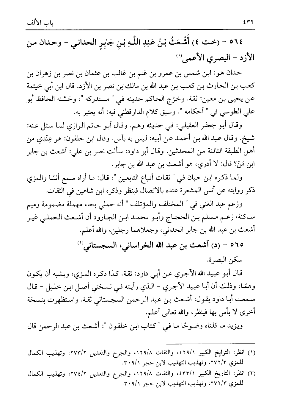 (¬١) انظر: التاريخ الكبير ١/ ٤٢٩، والثقات ٨/ ١٢٩، والجرح والتعديل ٢/ ٢٧٣، وتهذيب الكمال للمزي ٣/ ٢٧٢، وتهذيب التهذيب لابن حجر ١/ ٣٠٩.