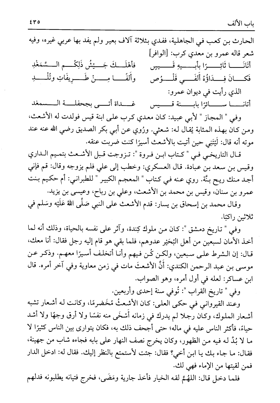 وفي "المجاز" لأبي عبيد: كان معدي كرب على ابنة قيس فولدت له الأشعث، ومن كان بهذه المثابة يُقال له: شعثي. ورُوي عن أبي بكر الصديق رضي اللَّه عنه عند موته أنه قال: لَيْتَنِي حين أتيت بالأشعث أسيرًا كنت ضربت عنقه.