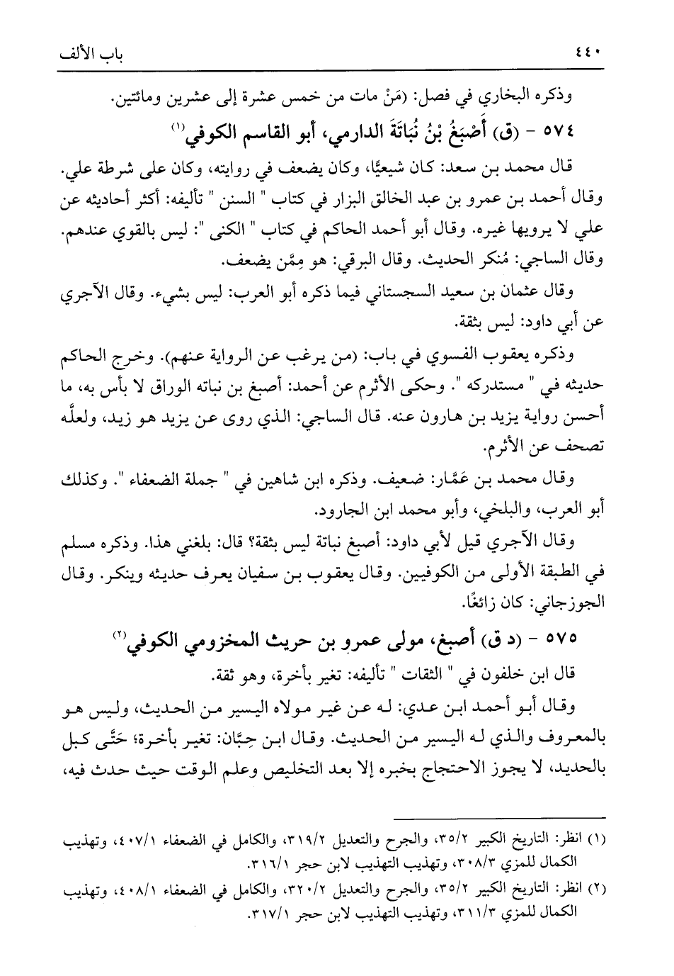 (¬١) انظر: التاريخ الكبير ٢/ ٣٥، والجرح والتعديل ٢/ ٣١٩، والكامل في الضعفاء ١/ ٤٠٧، وتهذيب الكمال للمزي ٣/ ٣٠٨، وتهذيب التهذيب لابن حجر ١/ ٣١٦.