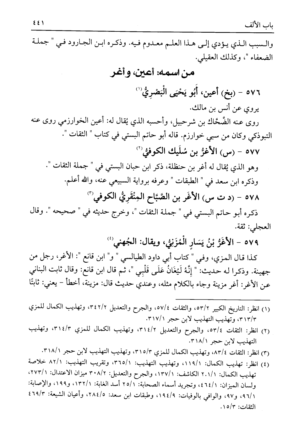 (¬١) انظر: التاريخ الكبير ٢/ ٥٣، والثقات ٤/ ٥٧، والجرح والتعديل ٢/ ٣٤٢، وتهذيب الكمال للمزي ٣/ ٣١٣، وتهذيب التهذيب لابن حجر ١/ ٣١٧.