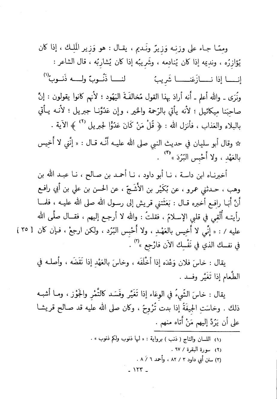 1 اللسان والتاج "ذنب" برواية: "لها ذنوب ولكم ذنوب".