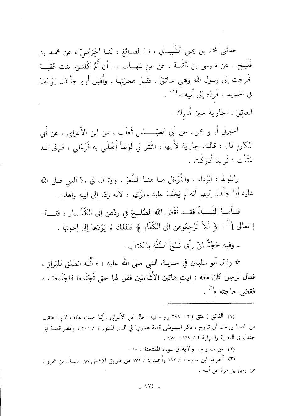 1 الفائق "عتق" 2/ 381 وجاء فيه: قال ابن الأعرابي: أنما سميت عاتقا لأنها عتقت من الصبا وبلغت أن تزوج, ذكر السيوطي قصة هجرتهما في الدر المنثورة 6/ 306, وانظر قصة جندل في البداية والنهاية 4/ 169, 175.