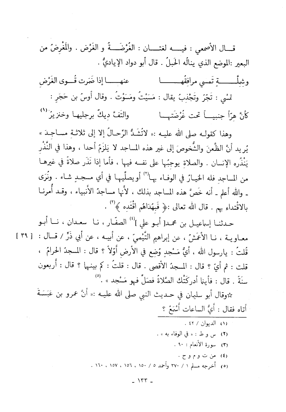 وَنَرَى - والله أعلم - أنه خَصَّ هذه المساجد بذلك لأنها مساجدُ الأَنبياء وقد أُمرنا بالاقْتداءِ بهم قَالَ الله تعالى: {فَبِهُدَاهُمْ اقْتَدِهِ} 3