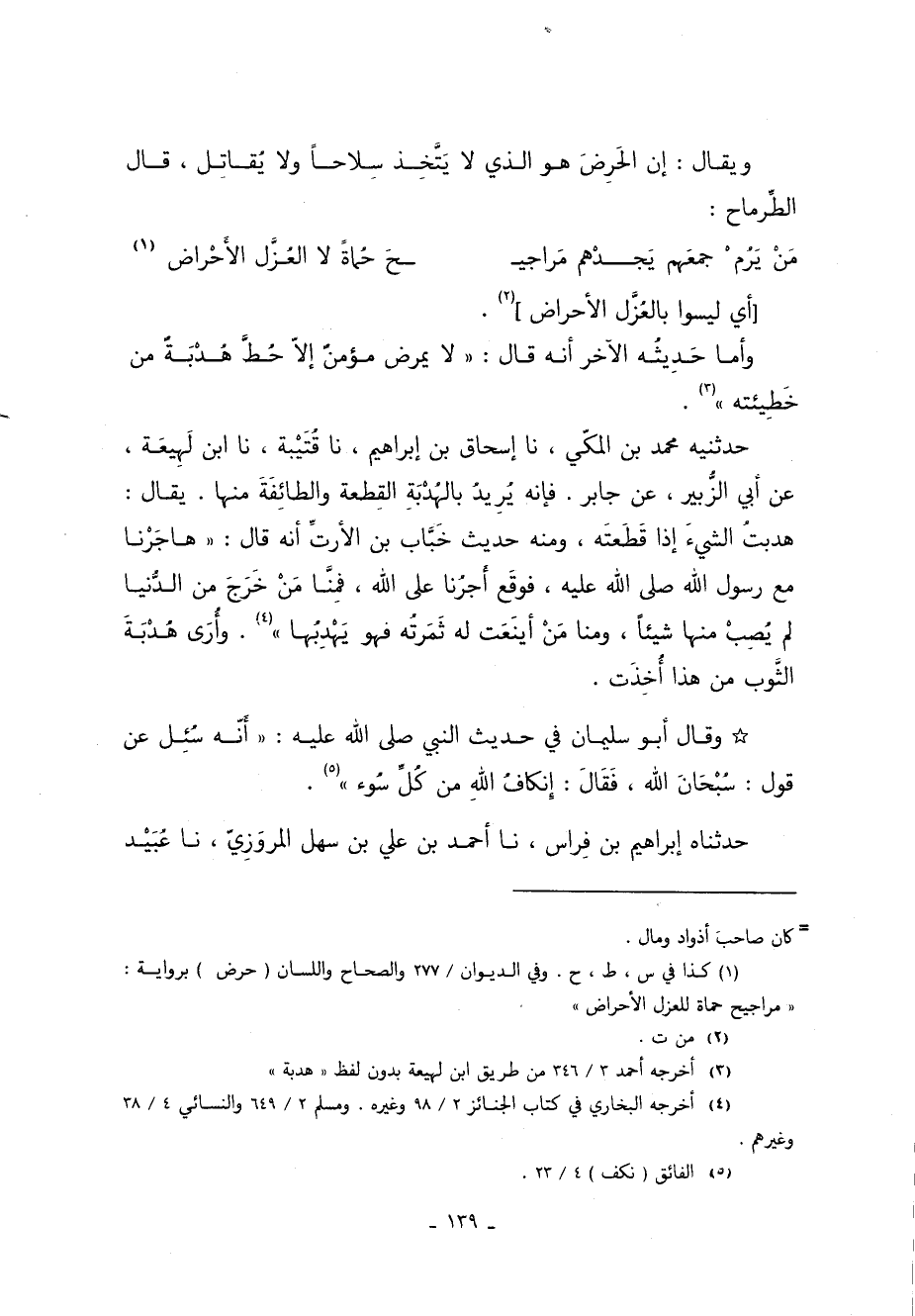 1 كذا في س, ط, ح. وفي الديوان /277 والصحاح واللسان "حرض" برواية: مراجيح حماة للعزل الأحراض"