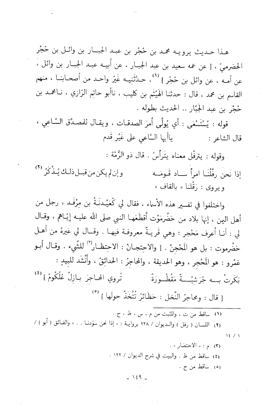 هذا حَدِيثٌ يَرْوِيهِ مُحَمَّدُ بْنُ حُجْرِ بْنِ عَبْدِ الْجَبَّارِ بْنِ وَائِلِ بْنِ حُجْرٍ الْحَضْرَمِيُّ عَنْ عَمِّهِ سَعِيدِ بْنِ عَبْدِ الْجَبَّارِ عَنْ أَبِيهِ عَبْدِ الْجَبَّارِ بْنِ وَائِلٍ عَنْ أُمِّهِ عَنْ وَائِلِ بْنِ حُجْرٍ 1 حدَّثَنِيه غَيُر وَاحِدٍ مِنْ أَصْحَابِنَا مِنْهُمُ الْقَاسِمُ بْنُ مُحَمَّدٍ قَالَ حَدَّثَنَا الْهَيْثَمُ بْنُ كُلَيْبٍ نا أَبُو حَاتِمٍ الرَّازِيُّ نا مُحَمَّدُ بْنُ حُجْرِ بْنِ عَبْدِ الجَبَّارِ ... الْحَدِيثَ بِطُولِهِ