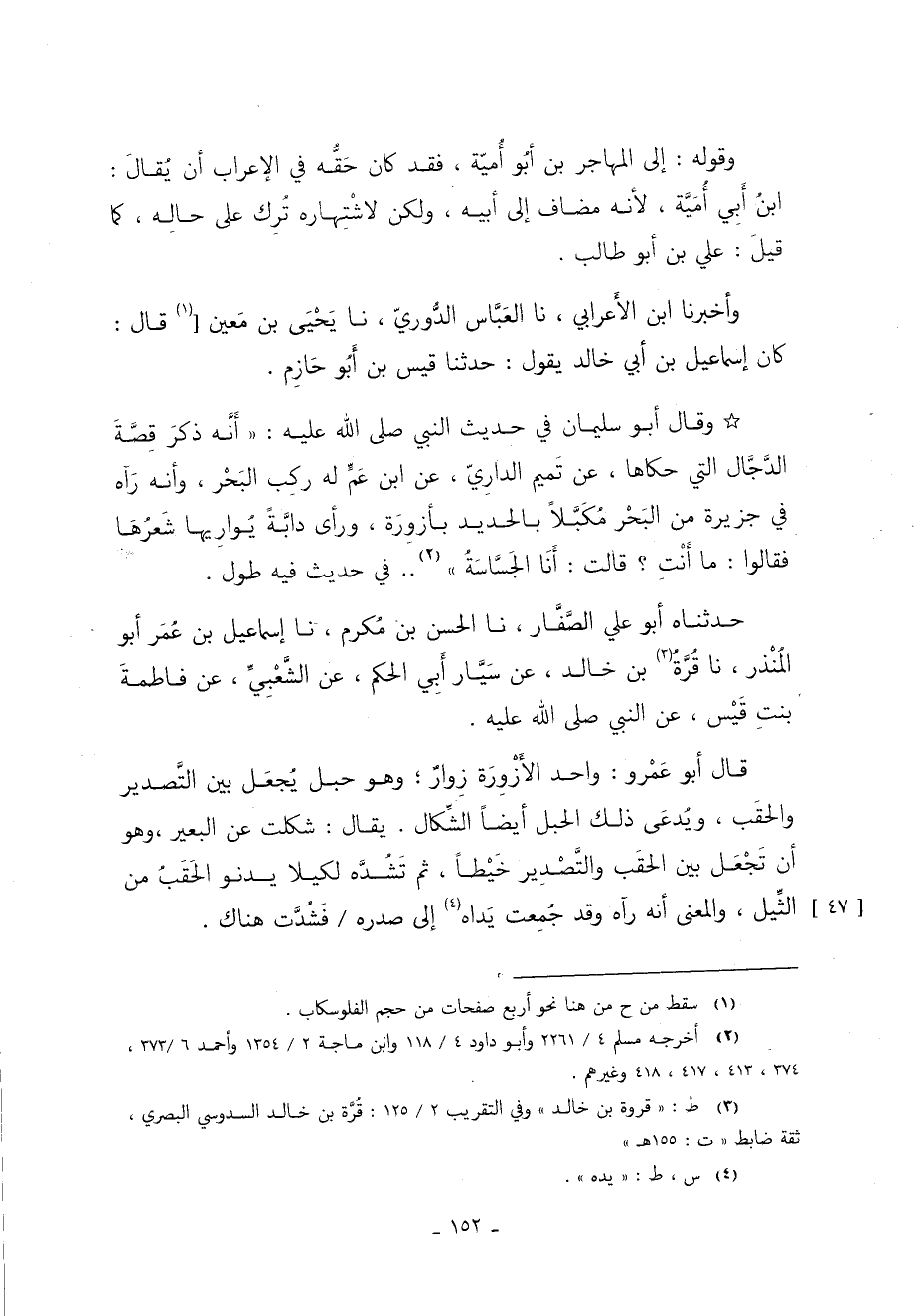 وأخبرنا ابن الأَعرابي نا العَبَّاس الدُّوريّ نا يَحْيَى بن مَعين 1 قَالَ كان إسماعيل بن أبي خالد يقول حدثنا قيس بن أبو حازم.