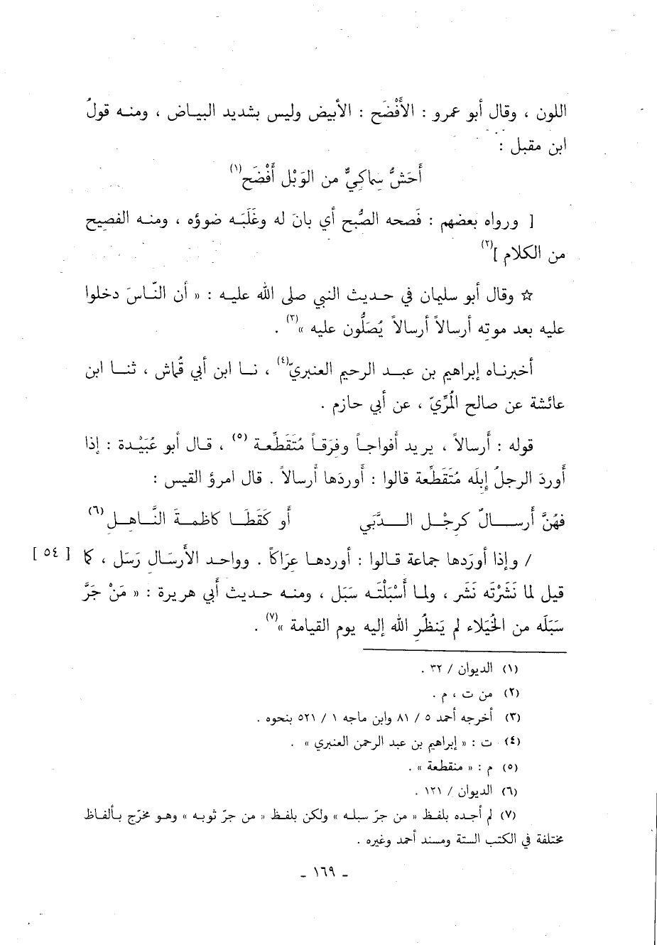 5 لم أجده بلفظ: "من جر سبله" ولكن بلفظ: "من جر ثوبه" وهو مخرج بألفاظ مختلفة في الكتب السنة ومسند أحمد وغيره.