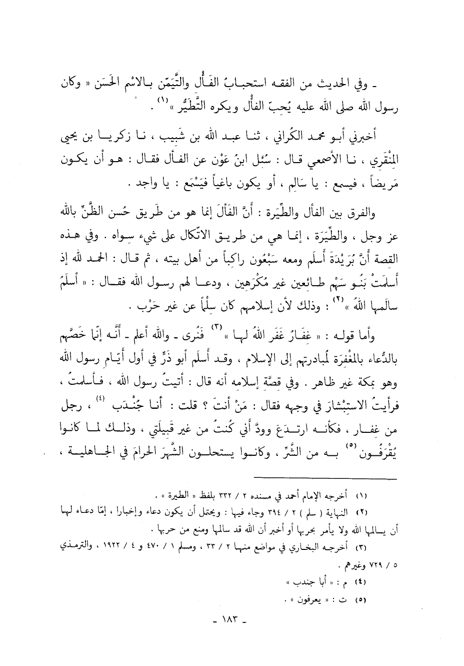 أخبرني أبو محمد الكُراني ثنا عَبْدُ اللَّهِ بْنُ شَبِيبٍ نا زَكَرِيَّا بْنُ يَحْيَى الْمِنْقَرِيُّ نا الأصمعي قَالَ سُئِل ابنُ عَوْن عن الفأل فَقَالَ هُوَ أن يكون مَريضًا فيسمع يا سَالِم أو يكون باغيًا فيَسْمَع يا واجد