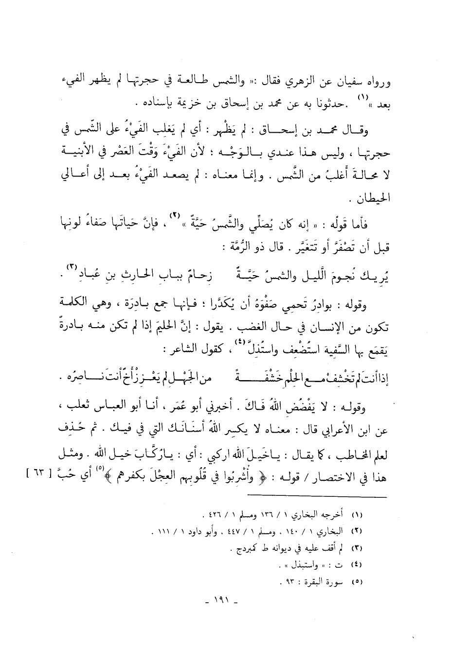 فأما قَولُه: إنه كان يُصَلِّي والشَّمسُ حَيَّةٌ 2 فإِنَّ حَياتَها صَفاءُ لونِها قبل أن تَصْفَرَّ أو تَتغَيَّر قَالَ ذو الرُّمَّة: