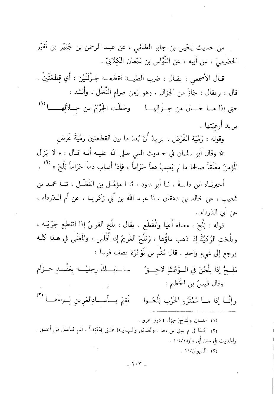 وَقَالَ أَبُو سُلَيْمَانَ فِي حَدِيثِ النَّبِيِّ صَلَّى اللَّهُ عَلَيْهِ وَسَلَّمَ أَنَّهُ قَالَ: "لا يَزَالُ الْمُؤْمِنُ مِعْنَقًا صَالِحًا مَا لَمْ يُصِبْ دَمًا حَرَامًا فَإِذَا أَصَابَ دَمًا حَرَامًا بَلَّحَ" 1