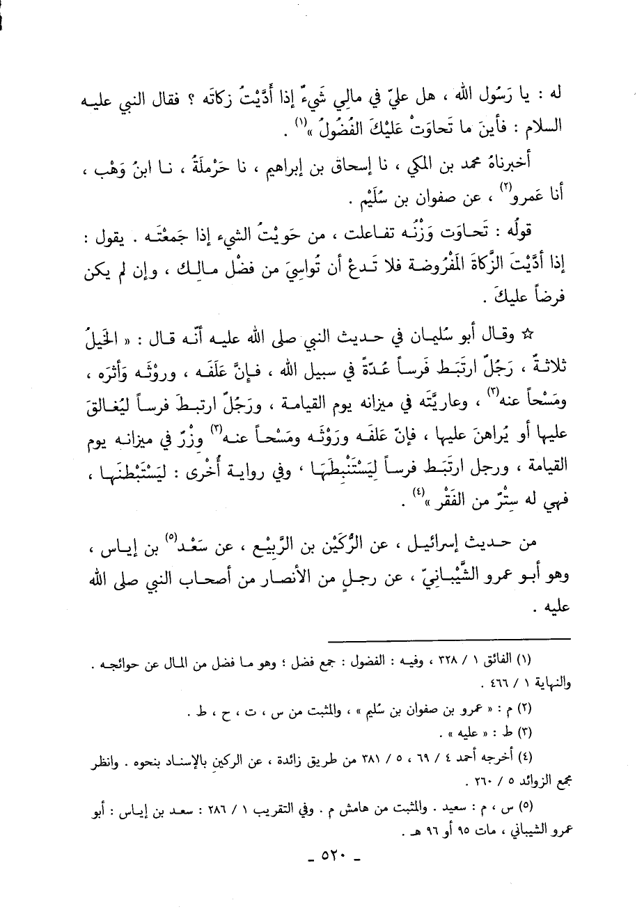 وَقَالَ أَبُو سُلَيْمَانَ فِي حَدِيثِ النَّبِيِّ صَلَّى اللَّهُ عَلَيْهِ وَسَلَّمَ: أَنَّ رَجُلًا قَالَ لَهُ يَا رَسُولَ اللَّهِ هَلْ عَلَيَّ فِي مَالِي شَيْءٌ إِذَا أَدَّيْتُ زَكَاتَهُ فَقَالَ النَّبِيُّ عَلَيْهِ السَّلامُ: "فَأَيْنَ مَا تَحَاوَتْ عَلَيْكَ الْفُضُولُ" 1.