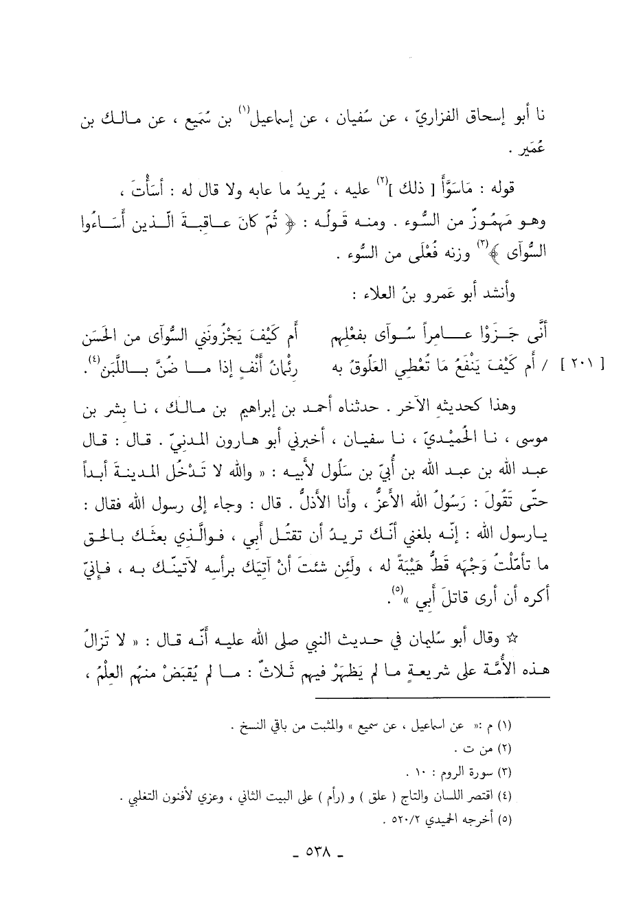 نا أَبُو إِسْحَاقَ الْفَزَارِيُّ عَنِ سُفْيَانَ عَنْ إِسْمَاعِيلَ 1 بْنِ سُمَيْعٍ عَنْ مَالِكِ بْنِ عُمَيْرٍ.