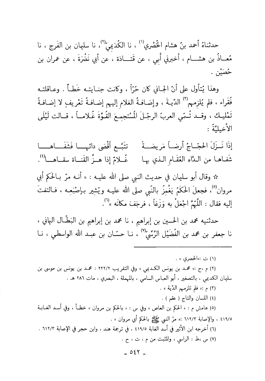 حَدَّثَنَاهُ أَحْمَدُ بْنُ هِشَامٍ الْخُصْرِيُّ 1 نا الْكُدَيْمِيُّ 2 نا سُلَيْمَانُ بْنُ الْفَرَجِ نا مُعَاذُ بْنُ هِشَامٍ أَخْبَرَنِي أَبِي عَنْ قَتَادَةَ عَنْ أَبِي نَضْرَةَ عَنْ عِمْرَانَ بْنِ حُصَيْنٍ.